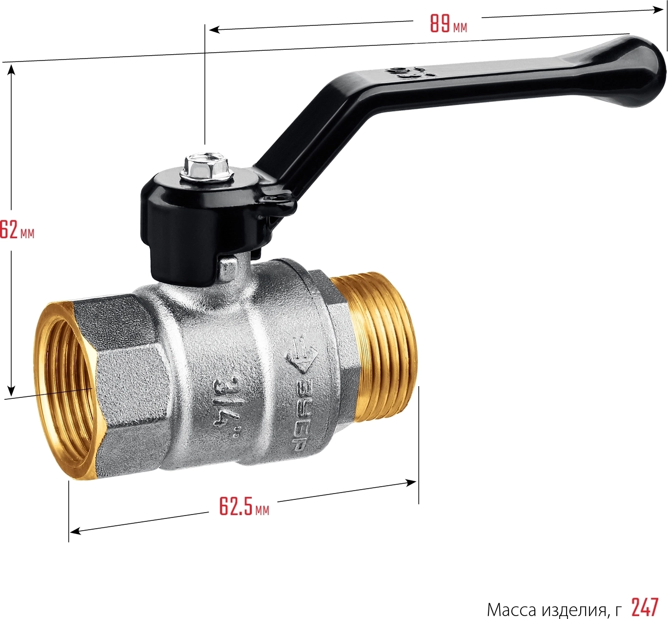 Шаровой кран ЗУБР d 3/4″, ручка-рычаг