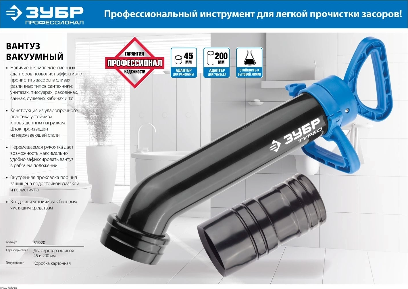 Вакуумный вантуз с двумя адаптерами ЗУБР 45 и 200 мм