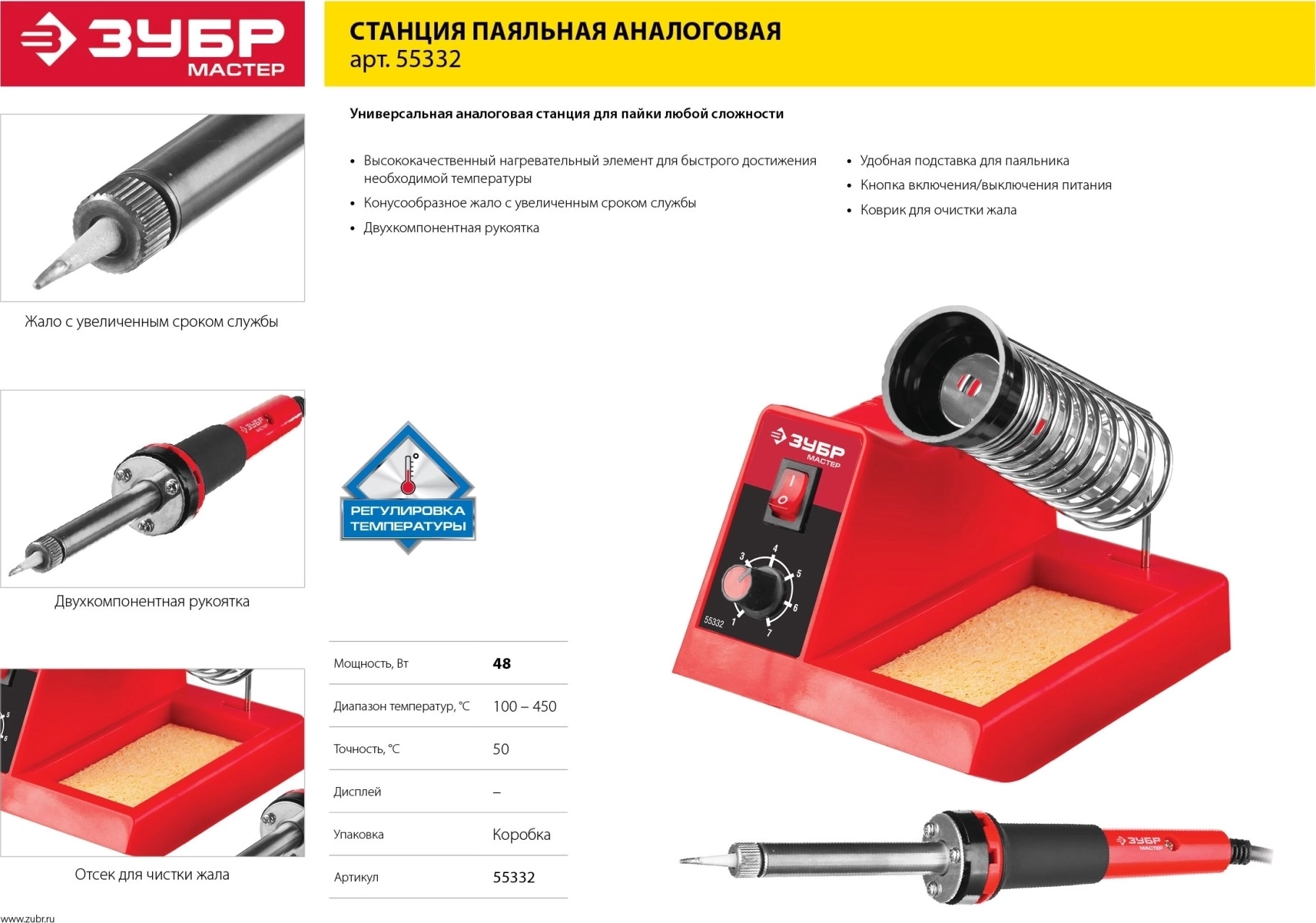 Паяльная станция ЗУБР ПС-50А, 48 Вт, 150 - 450°C