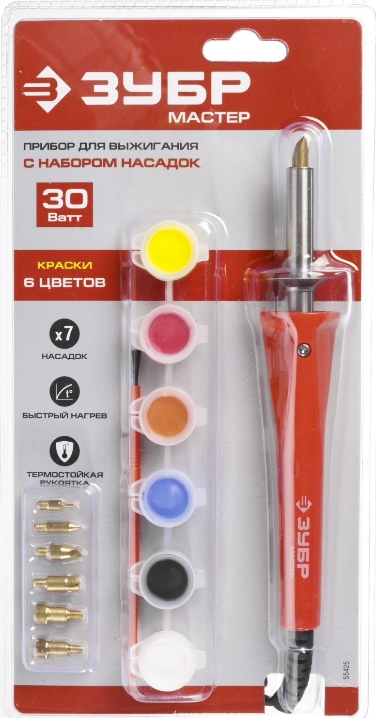 Прибор для выжигания с набором насадок и красками ЗУБР 30 Вт