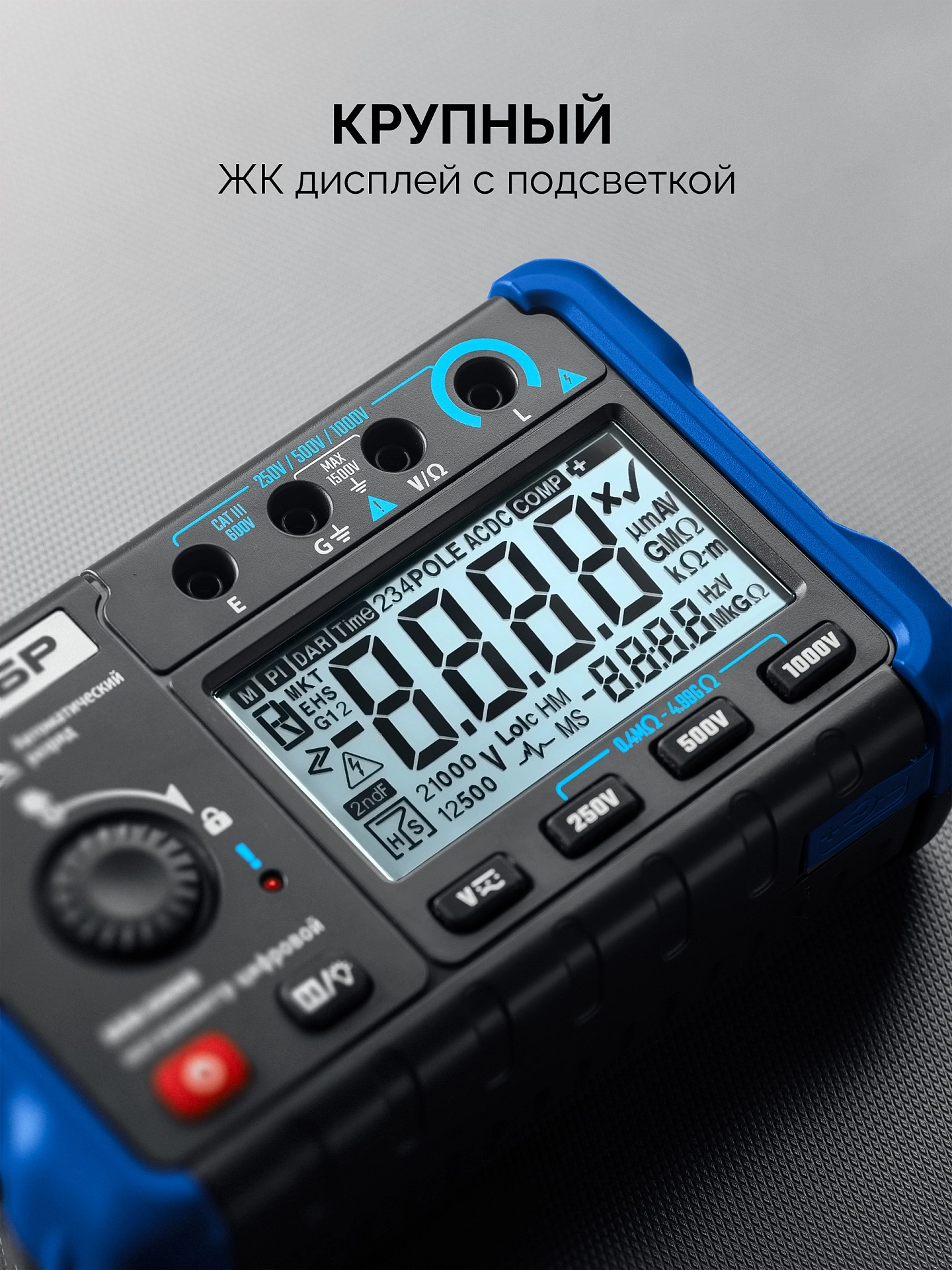 Тестовое напряжение (DCV), MAX: АС 250 / 500 / 1000 В