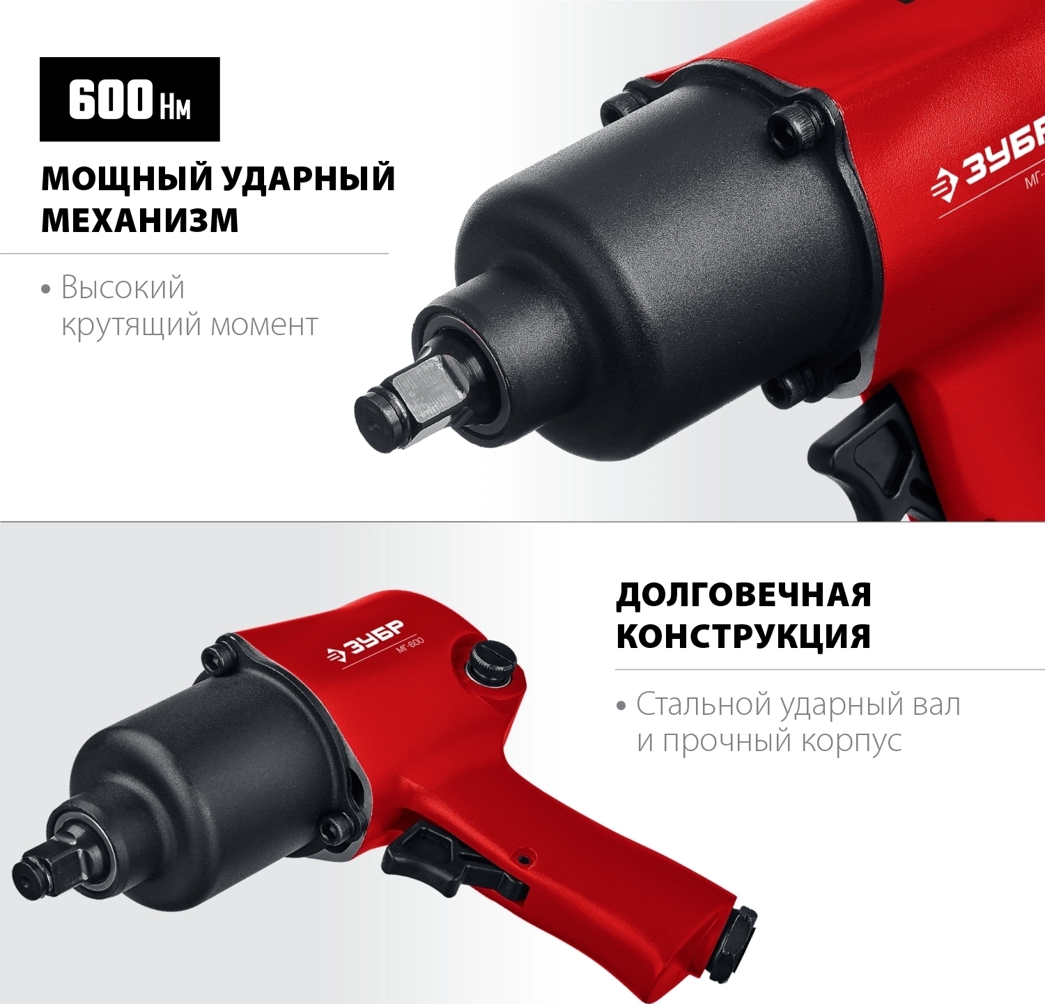 Ударный пневматический гайковерт ЗУБР МГ-600, 1/2″, 600 Н·м