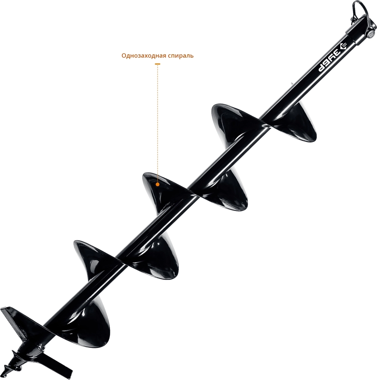 Шнек является сменным элементом для мотобуров ЗУБР. Он представляет собой винтообразный бур, который широко применяют для бурения скважин бытового назначения. Например, с его помощью можно бурить скважины для установки столбов. Благодаря винтовой форме шнек быстро проникает сквозь грунт и выбрасывает его наверх.