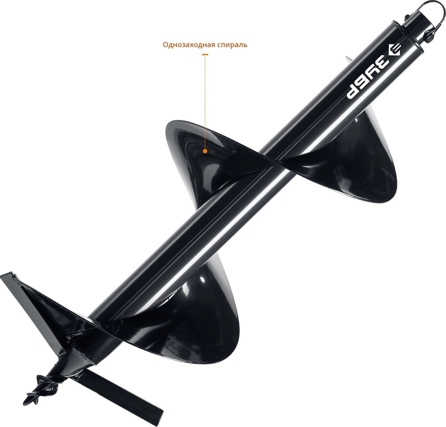 Шнек является сменным элементом для мотобуров ЗУБР. Он представляет собой винтообразный бур, который широко применяют для бурения скважин бытового назначения. Например, с его помощью можно бурить скважины для установки столбов. Благодаря винтовой форме шнек быстро проникает сквозь грунт и выбрасывает его наверх.