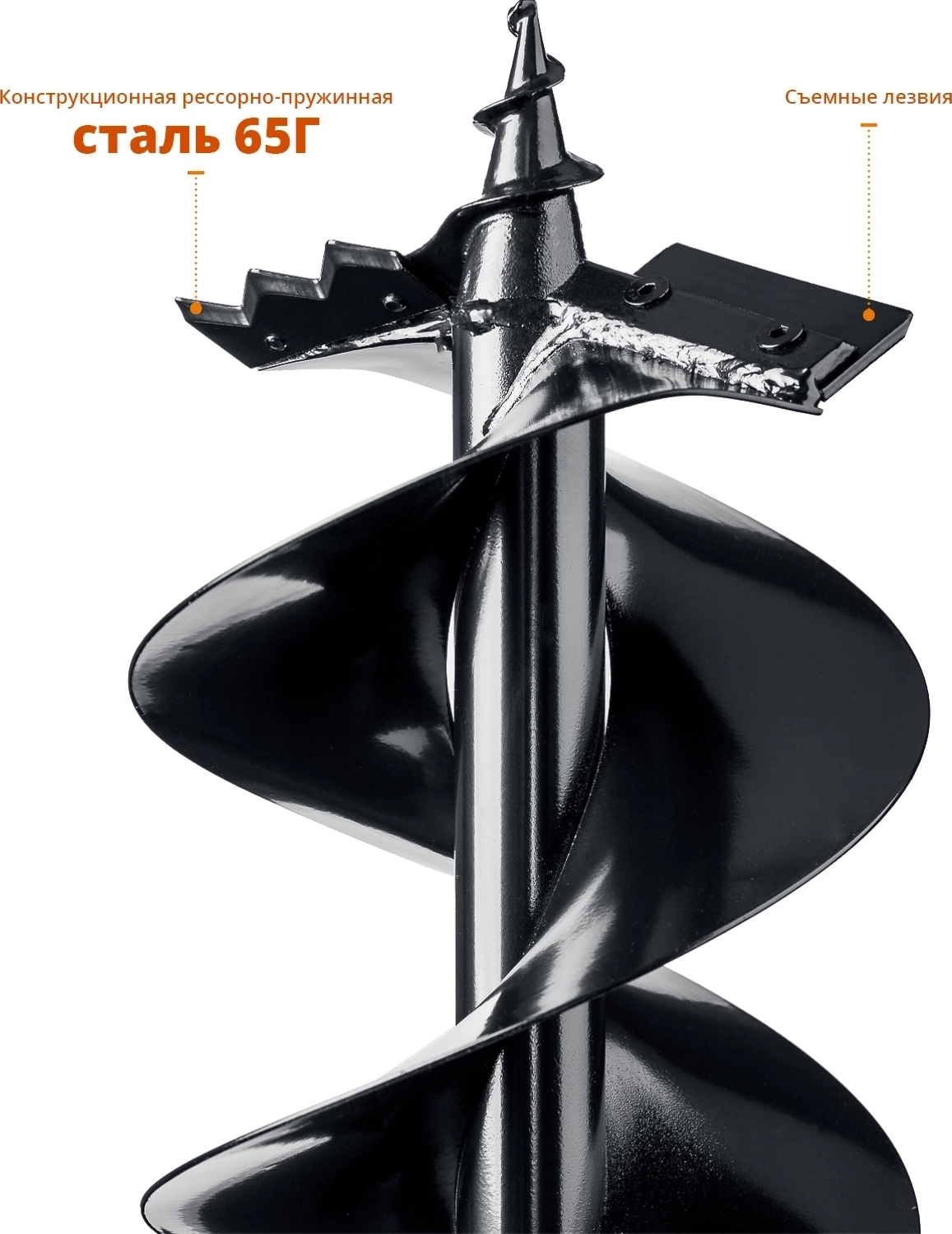 Шнек для мерзлого грунта используется совместно с мотобурами ЗУБР. Представляет собой инструмент винтовой конструкции с двумя режущими элементами, выполненным из высокопрочной стали 65Г. При помощи шнека можно бурить в мерзлом или каменистом грунте.