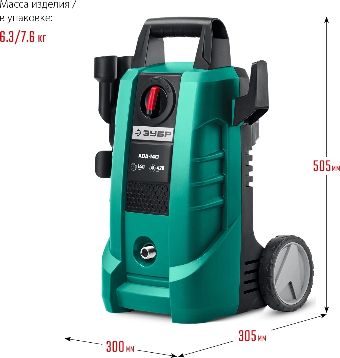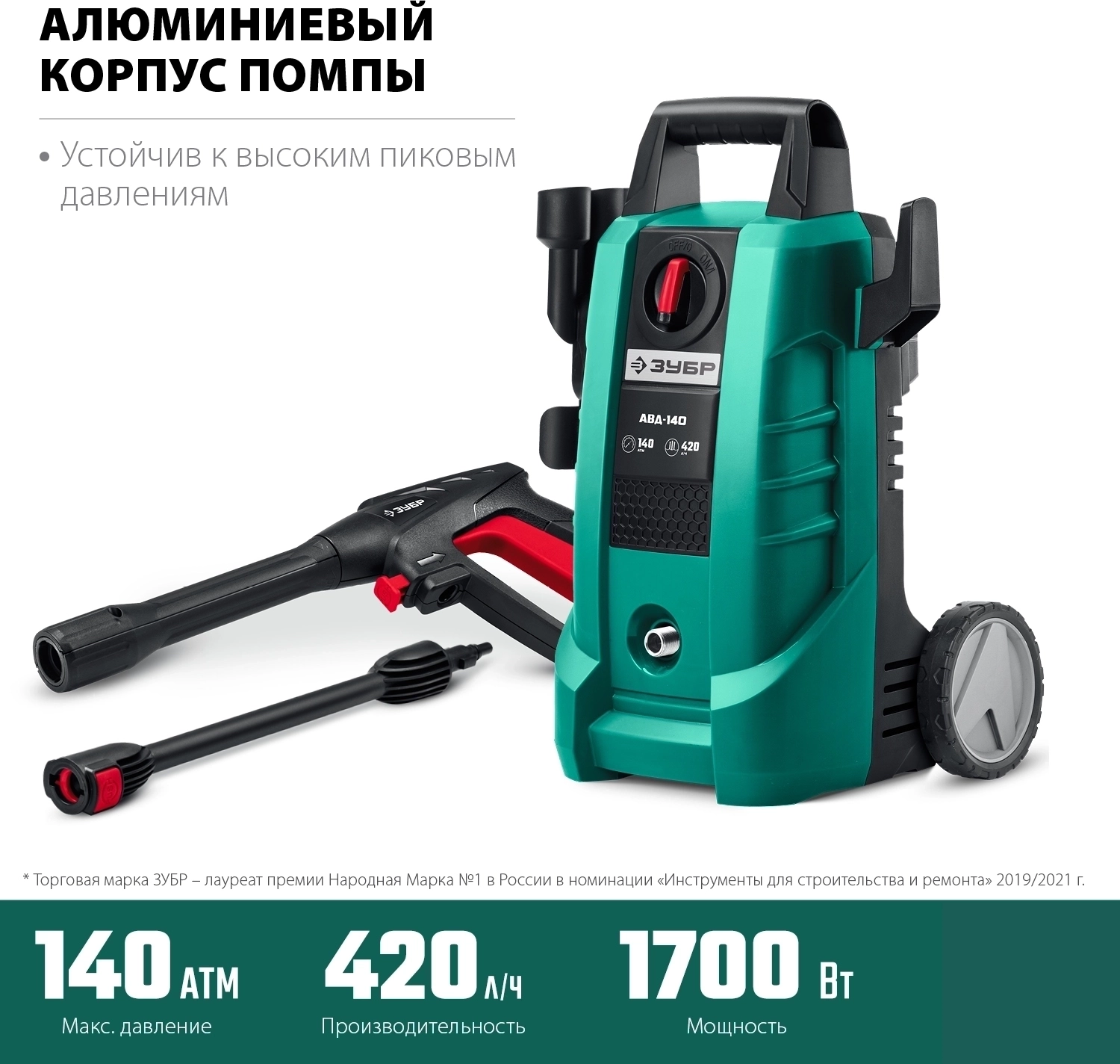 Мойка высокого давления ЗУБР АВД-140, пистолет МИГ-180, 140 Атм, 1700 Вт