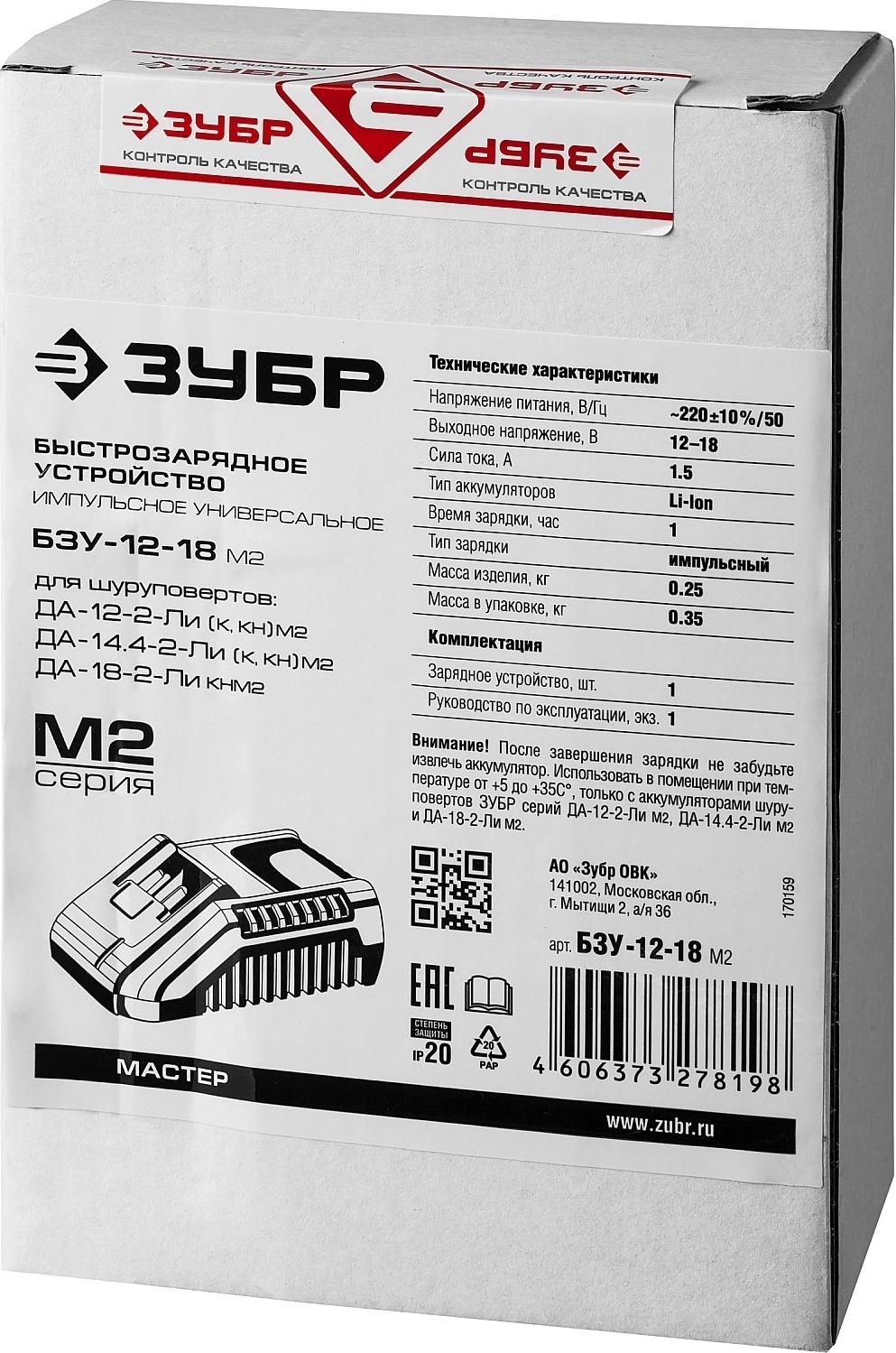 Полностью цифровое интеллектуальное устройство для бережной и максимальной (в отличие от устройств другого типа) зарядки батареи - для полной отдачи Вашего инструмента ЗУБР