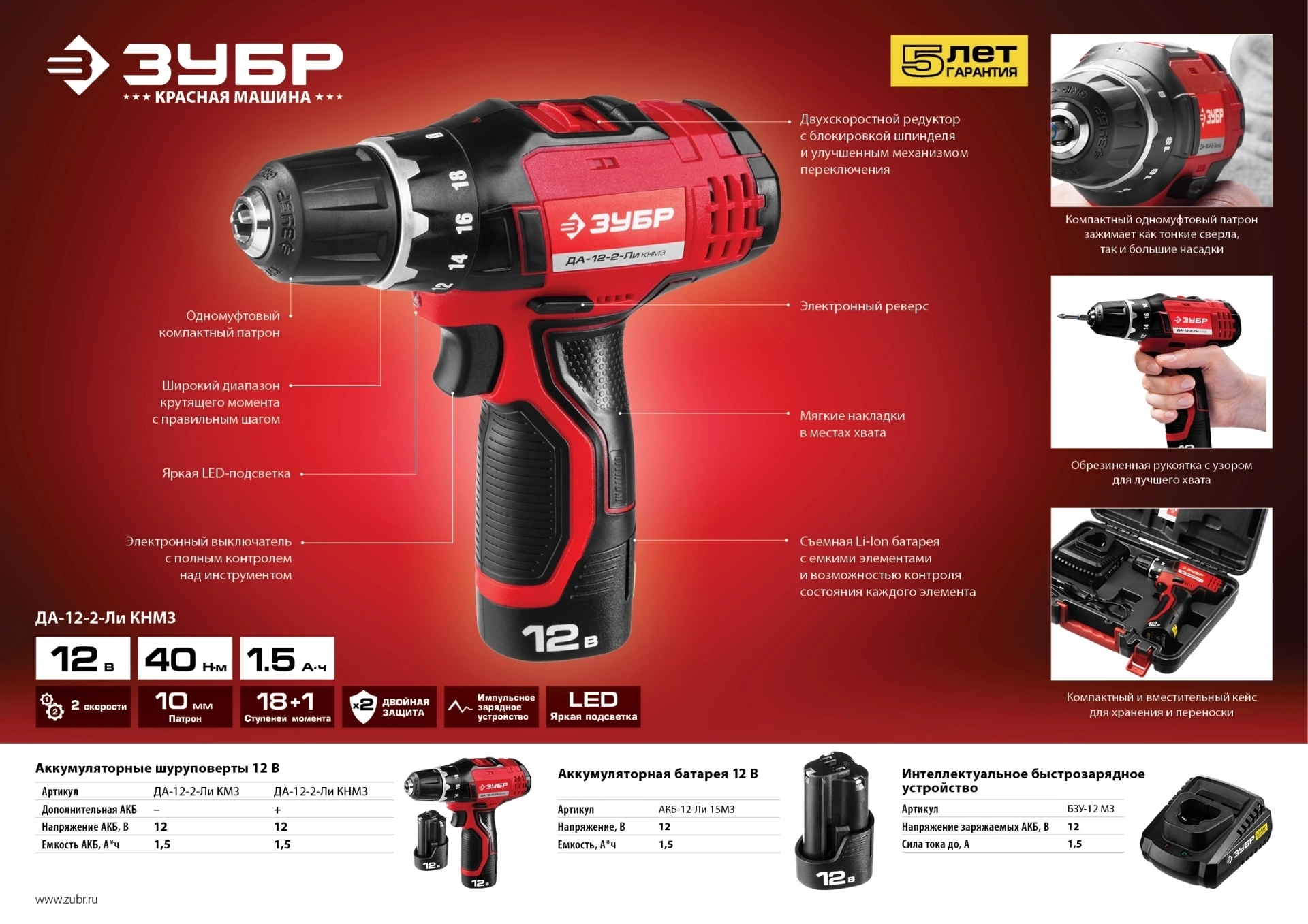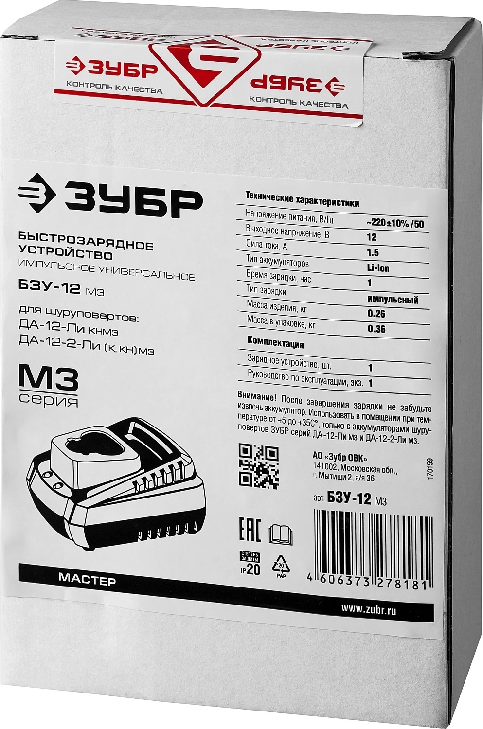 Полностью цифровое интеллектуальное устройство для бережной и максимальной (в отличие от устройств другого типа) зарядки батареи - для полной отдачи Вашего инструмента ЗУБР