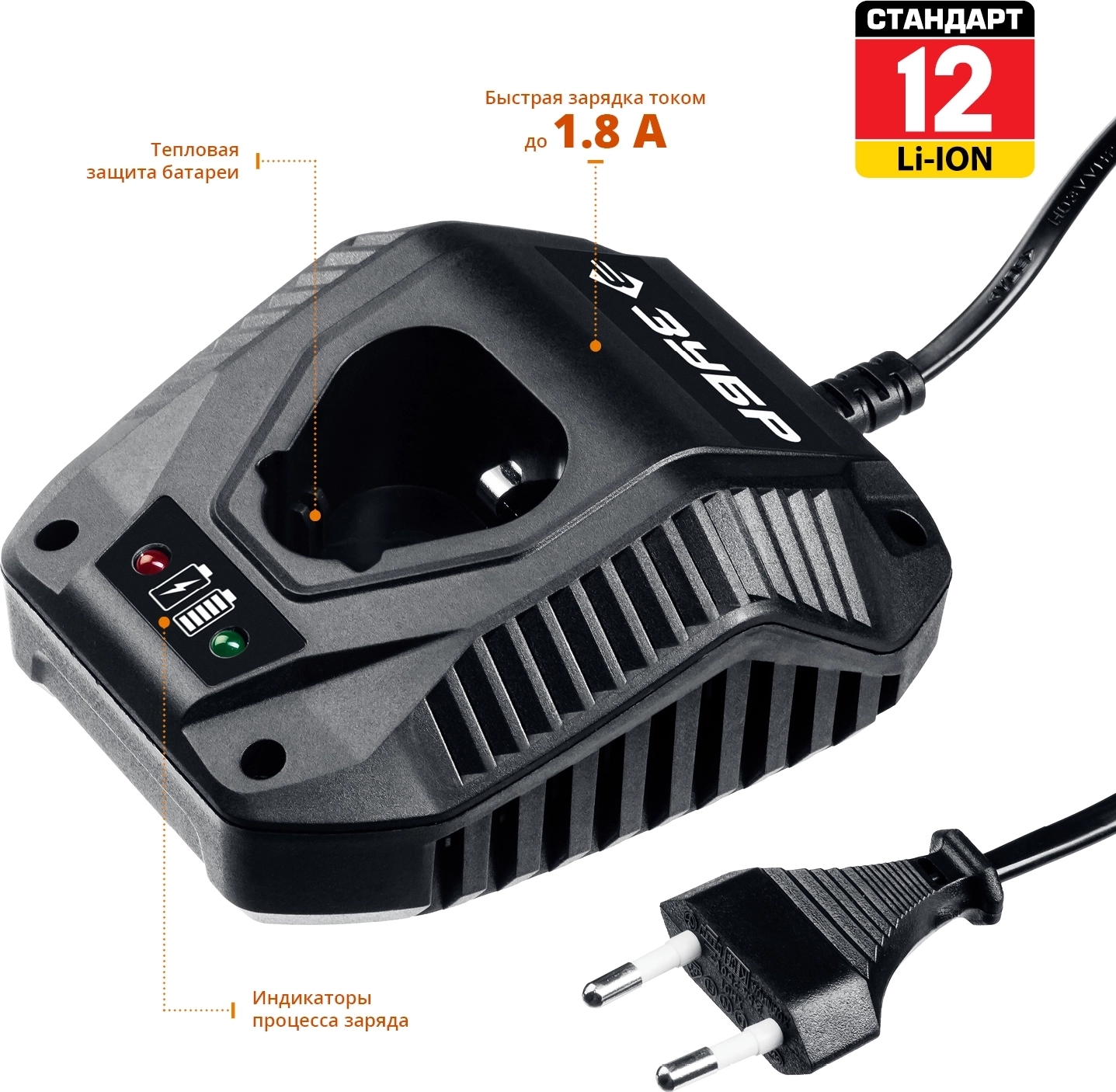 Зарядное устройство для Li-Ion АКБ ЗУБР С1-12, 12 В, 1.8 А