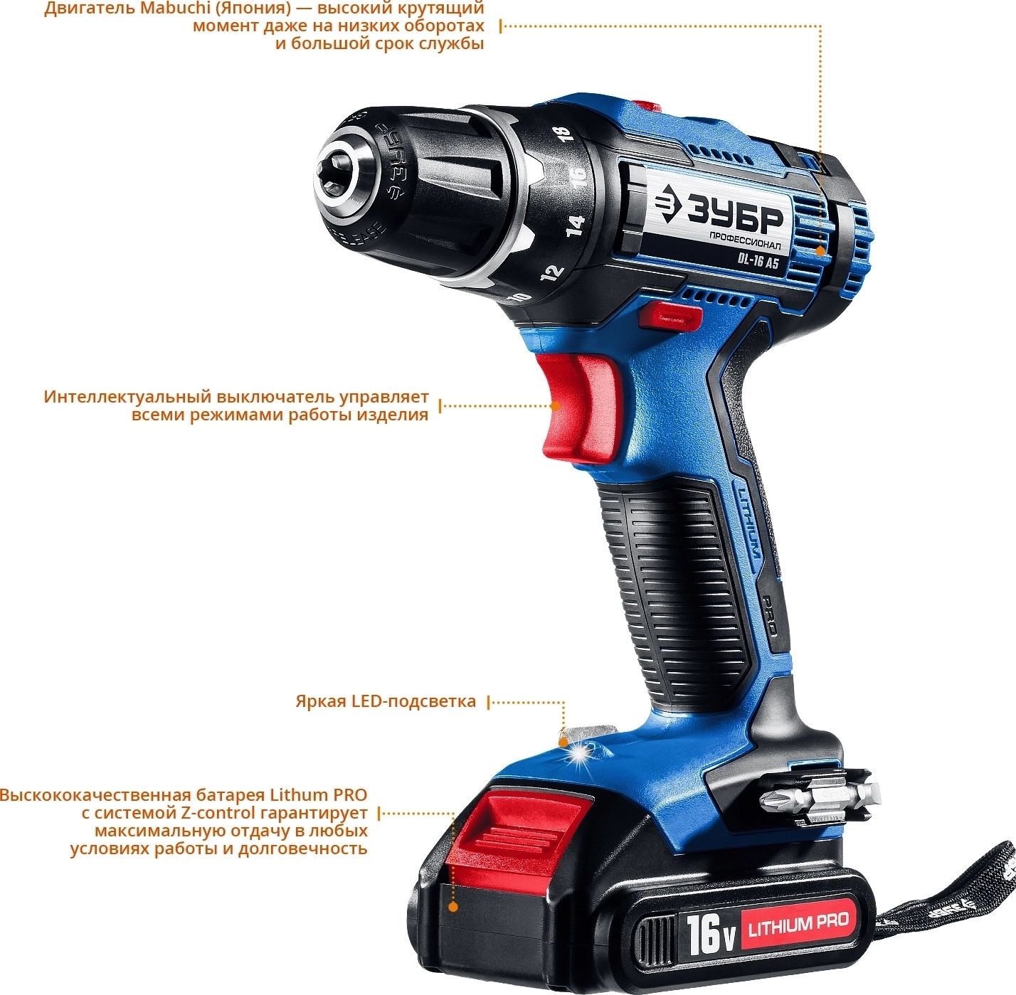 ЗУБР Профессионал DL-16 дрель-шуруповерт, 2 АКБ, в кейсе
