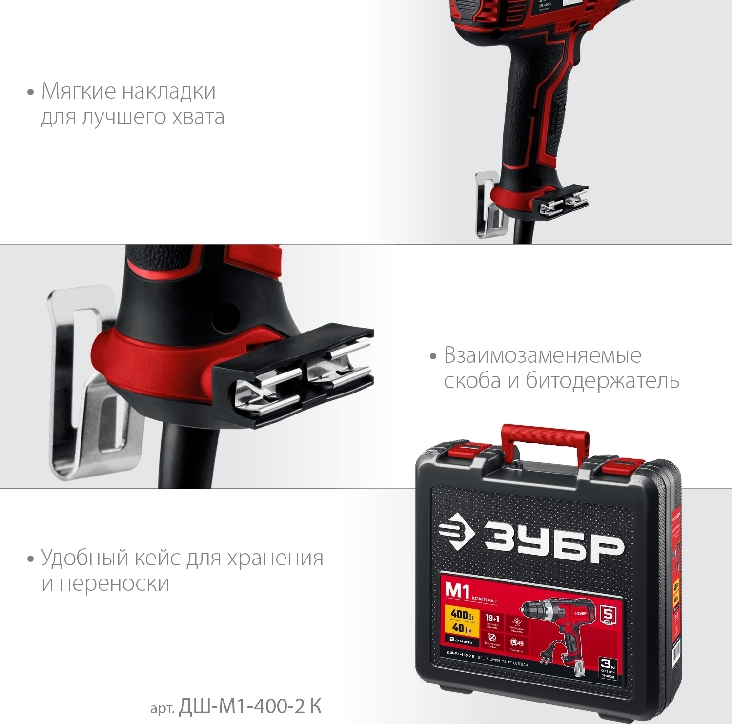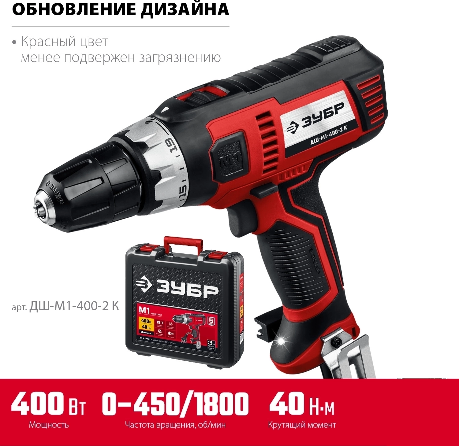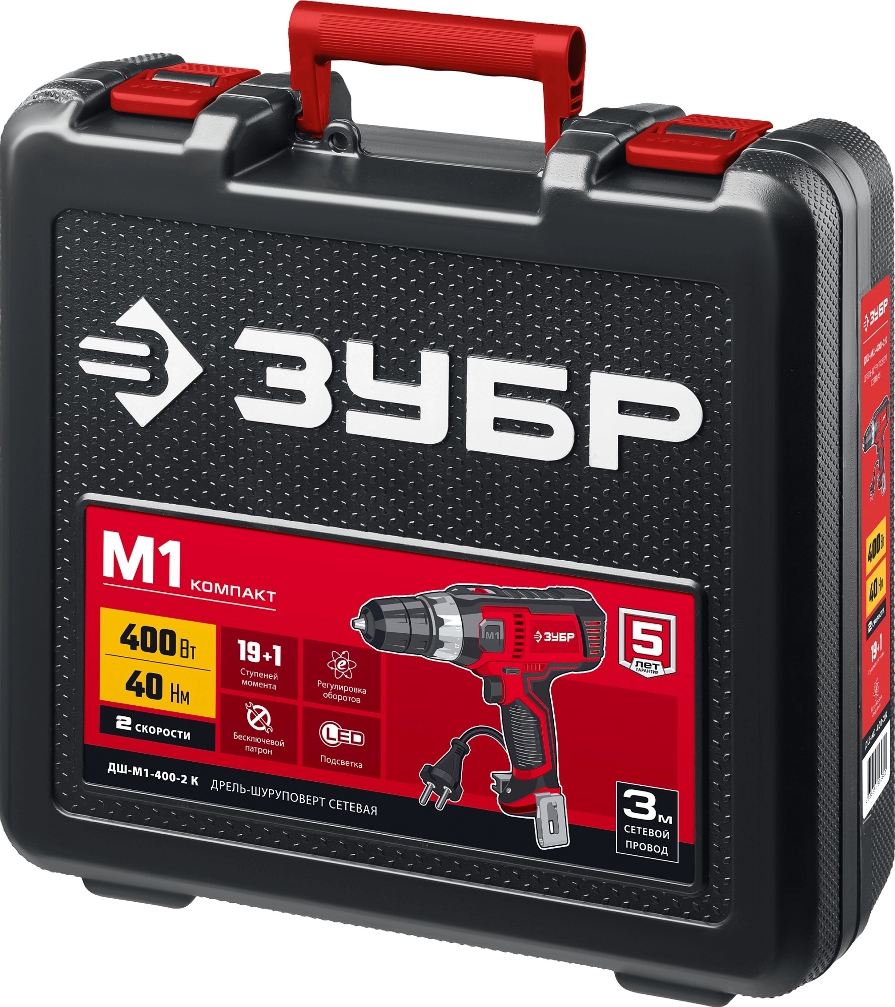 Сетевая дрель-шуруповерт ЗУБР 400 Вт, 40 Н·м, кейс