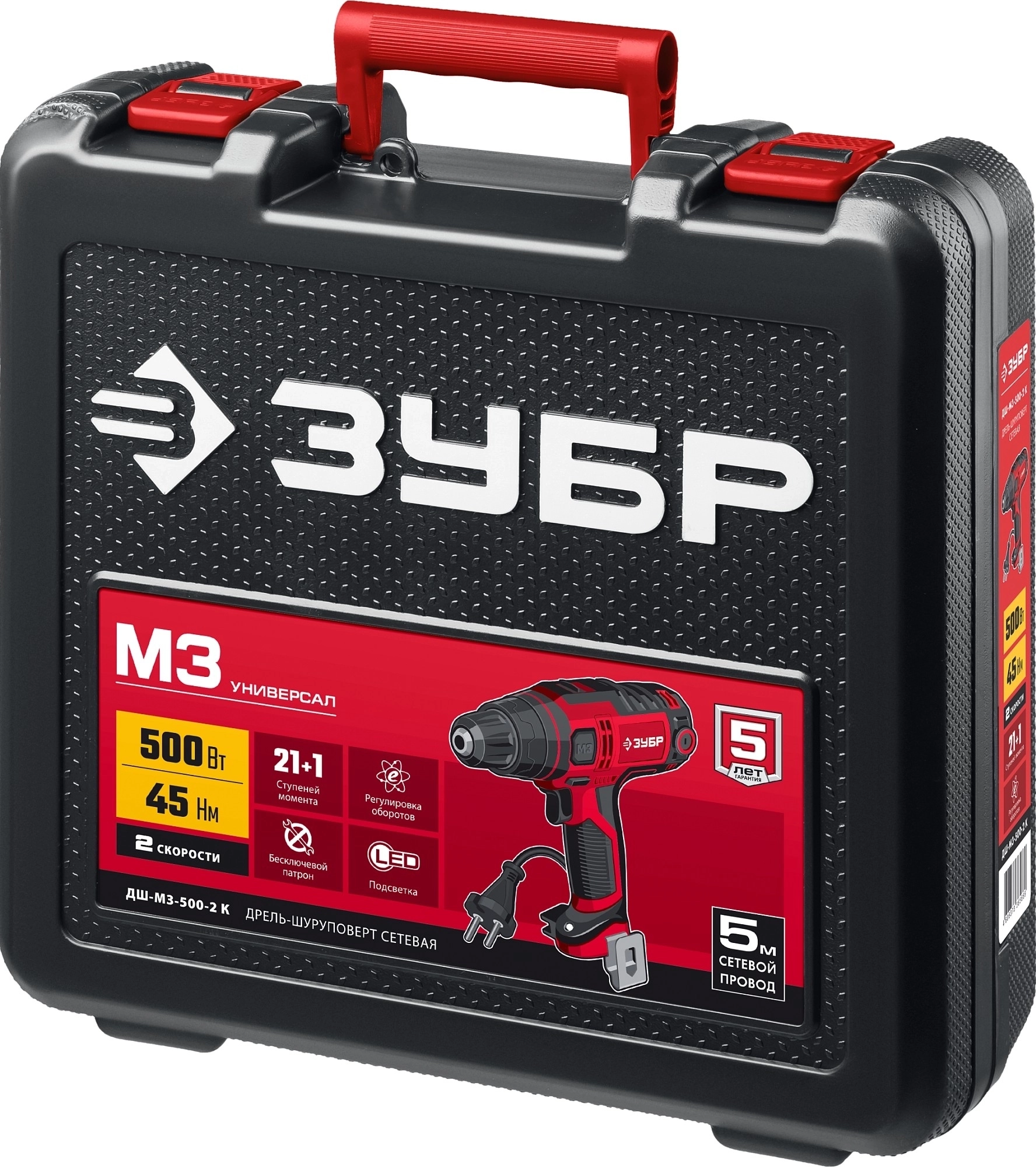 Сетевая дрель-шуруповерт ЗУБР 500 Вт, 45 Н·м, кейс