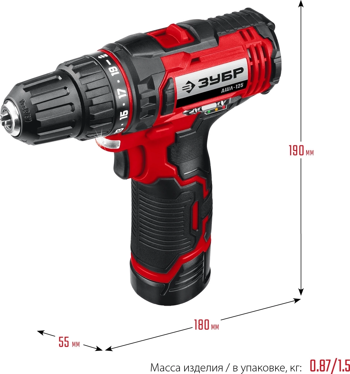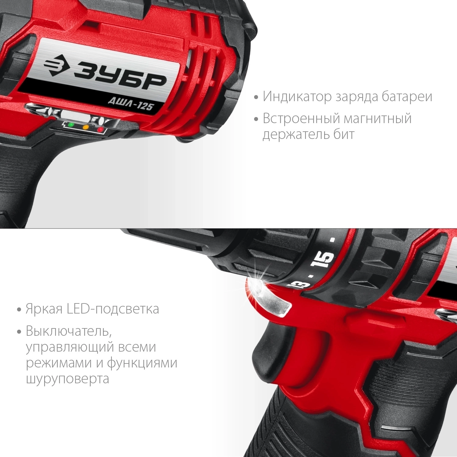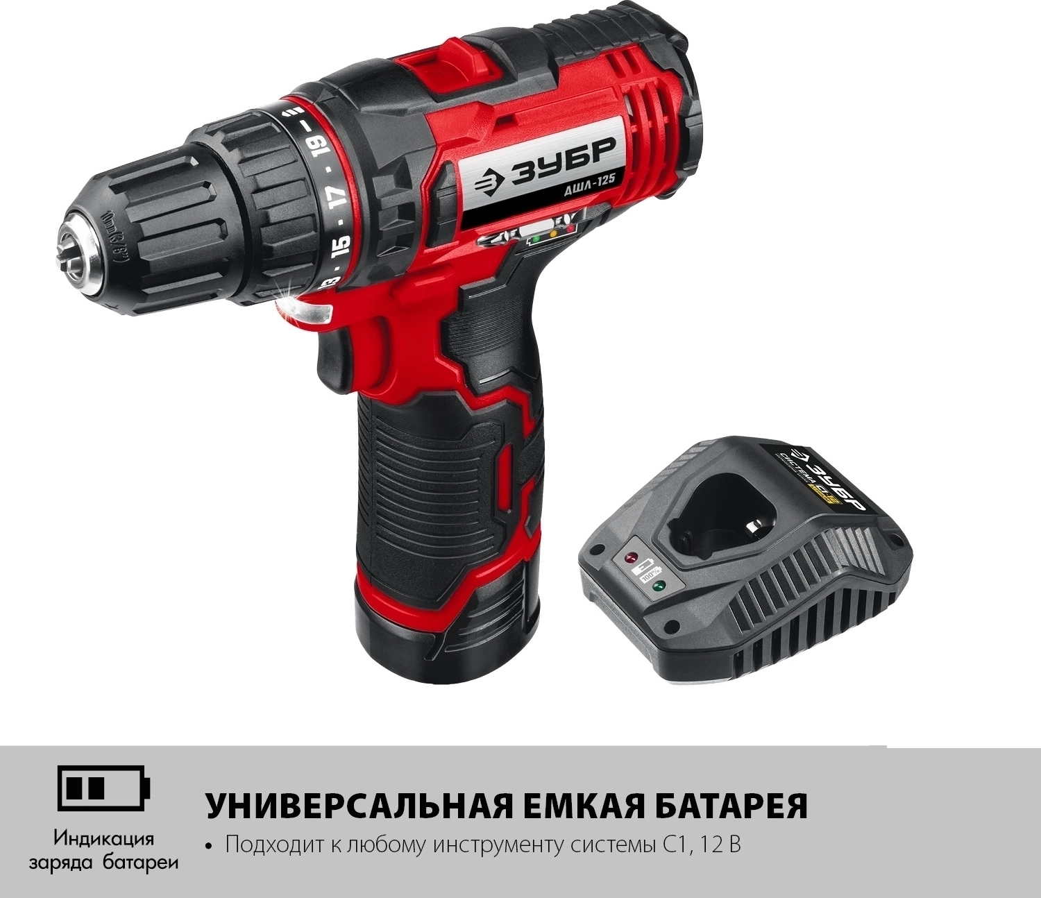 Дрель-шуруповерт ЗУБР С1-12, 12 В, 30 Н·м, 1 АКБ (2 А·ч)