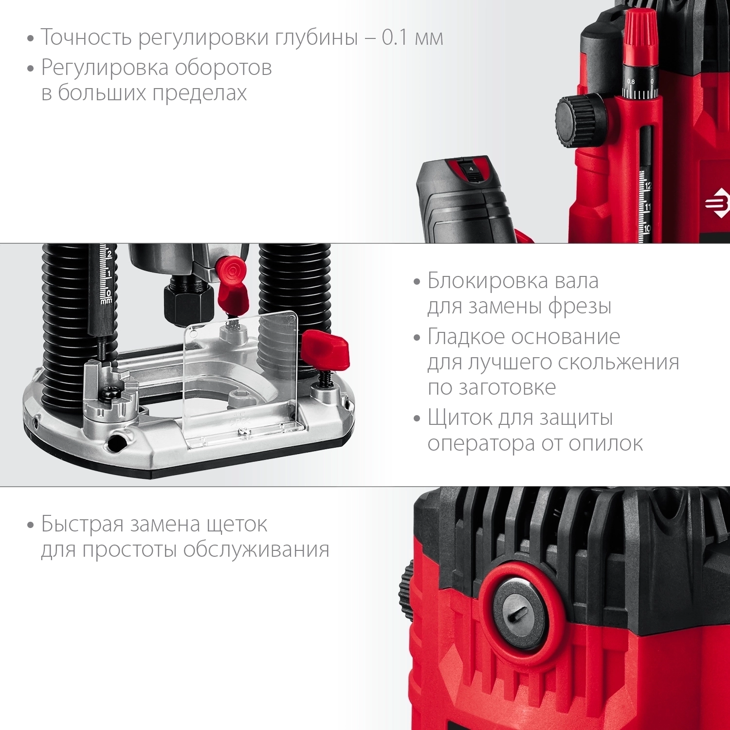 - Рабочий ход фрезы 50 мм и возможность использования полного хода для фрез диаметром до 42 мм
