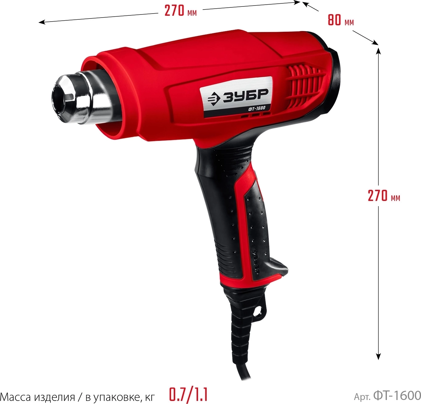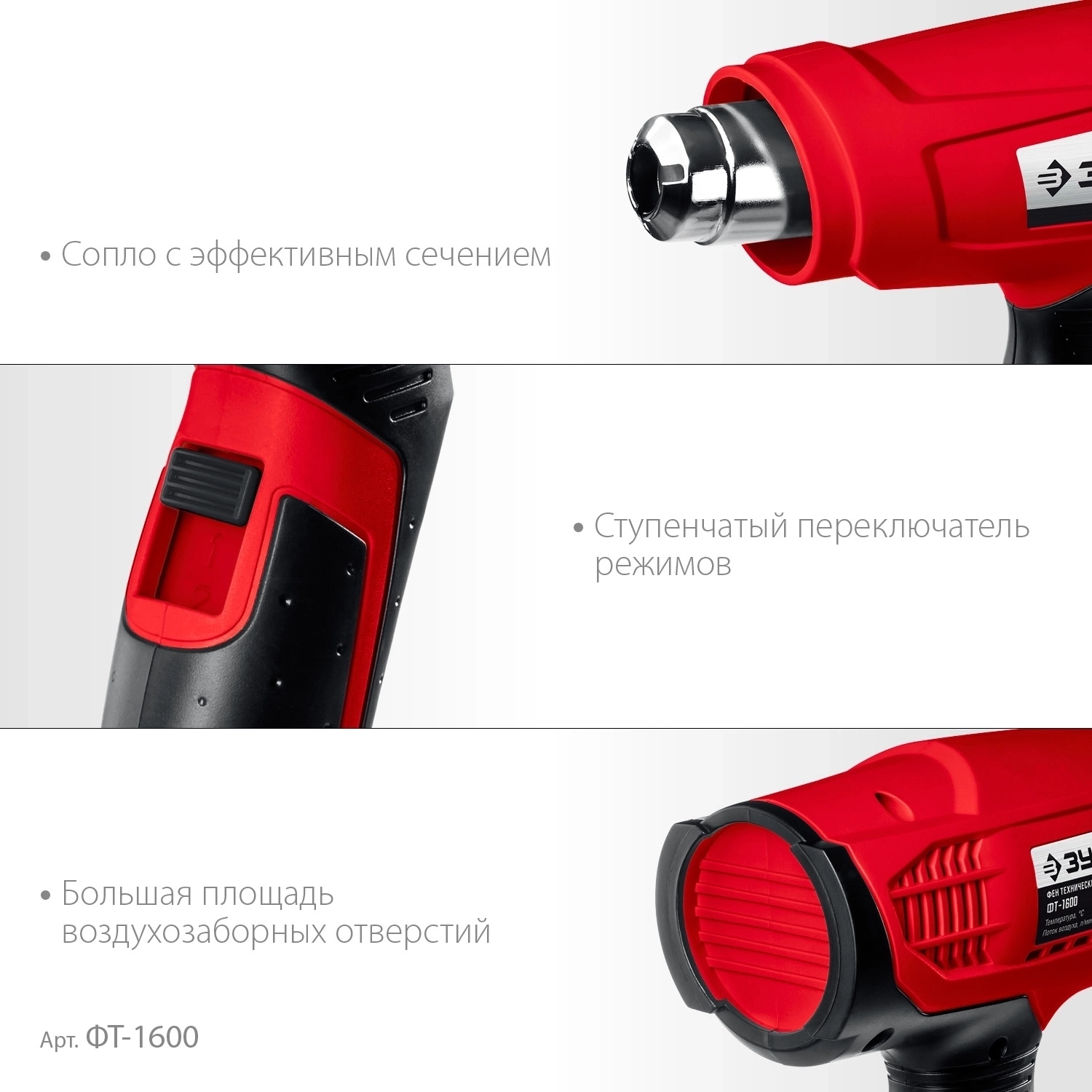 - 3 различные насадки в комплекте позволяют выполнять любую работу – от точечного нагрева до сушки больших площадей