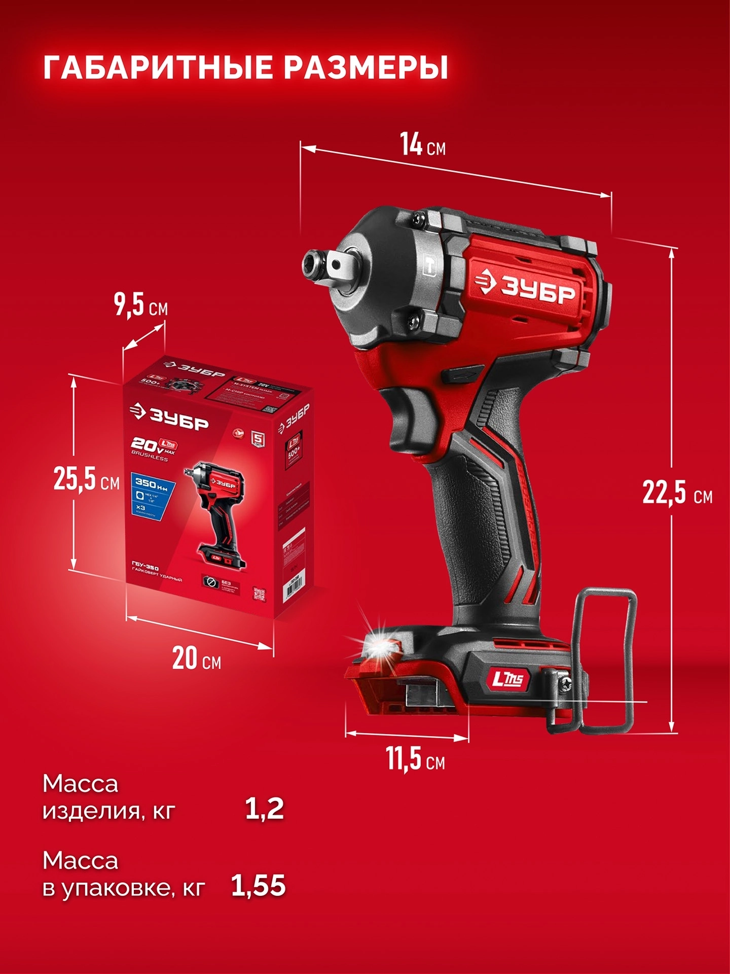 Бесщеточный ударный гайковерт ЗУБР 20 В, 350 Н·м, без АКБ (LMS)
