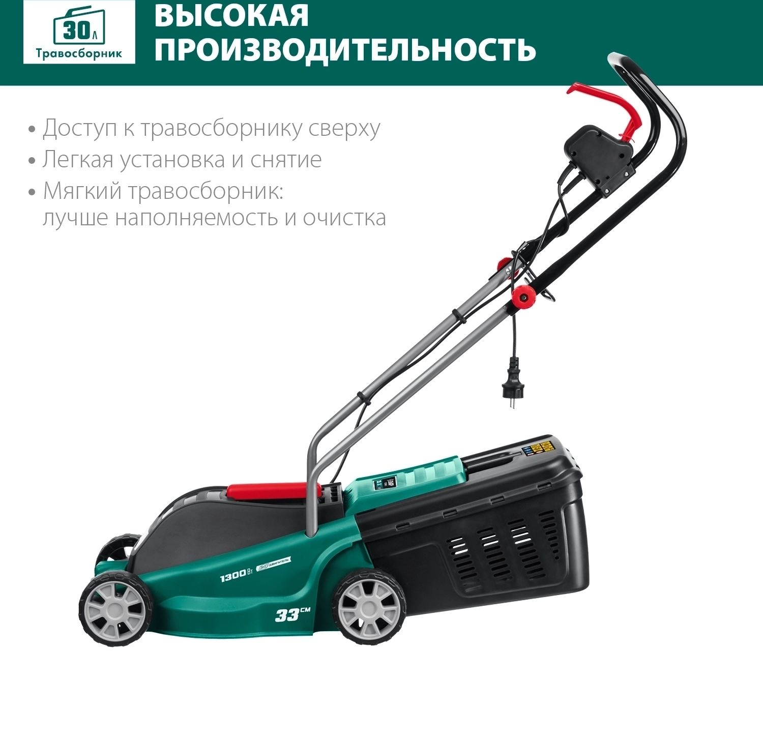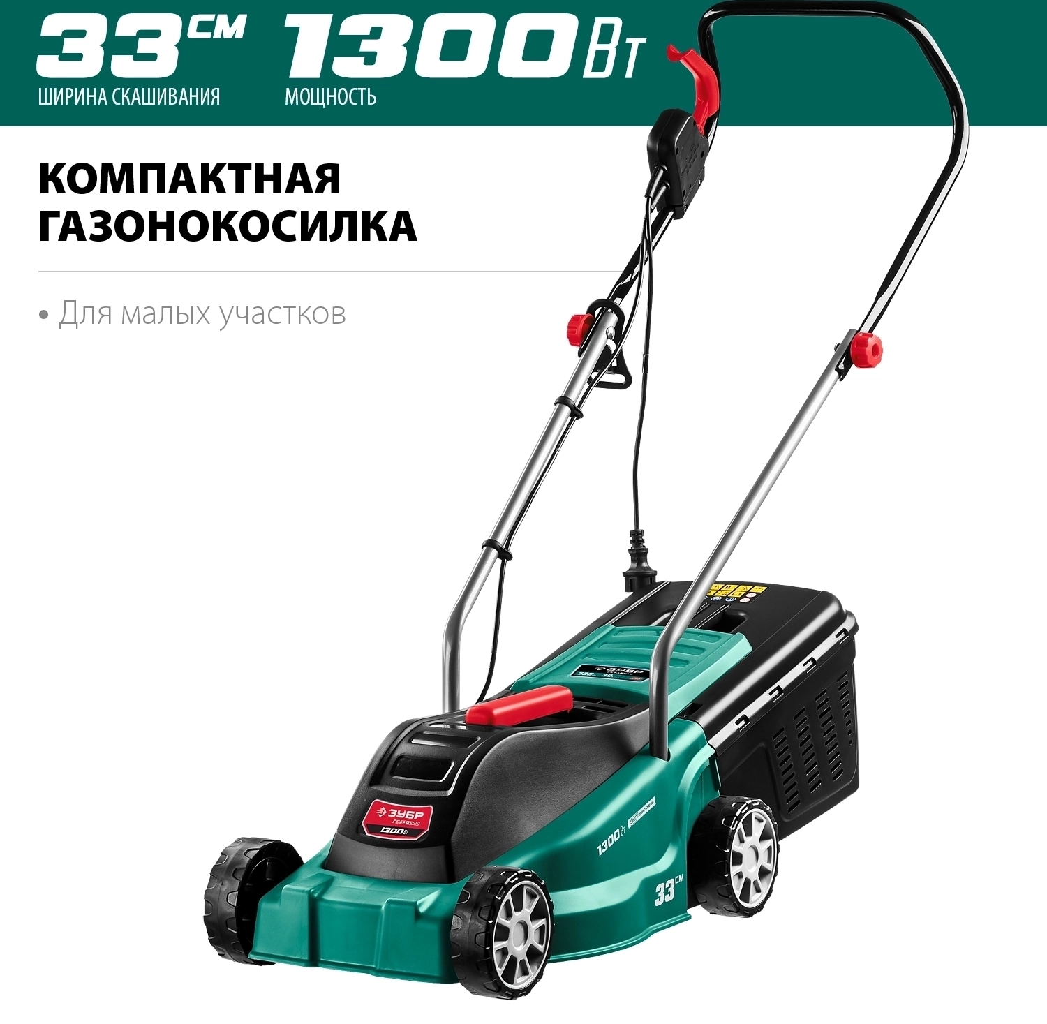 Сетевая газонокосилка ЗУБР 1300 Вт, ш/с 33 см
