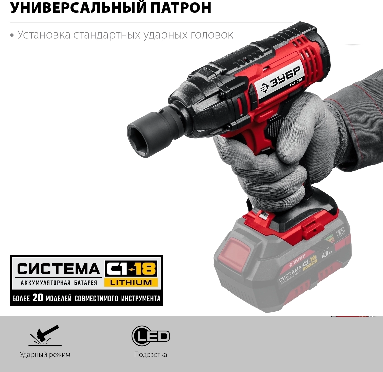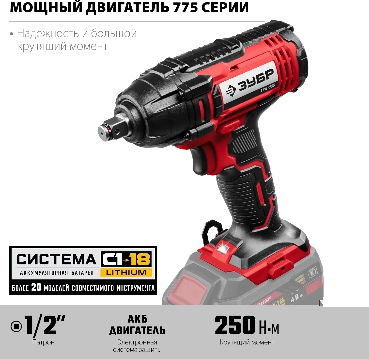 Гайковерт ударный ЗУБР С1-18, 18 В, 250 Н·м, без АКБ