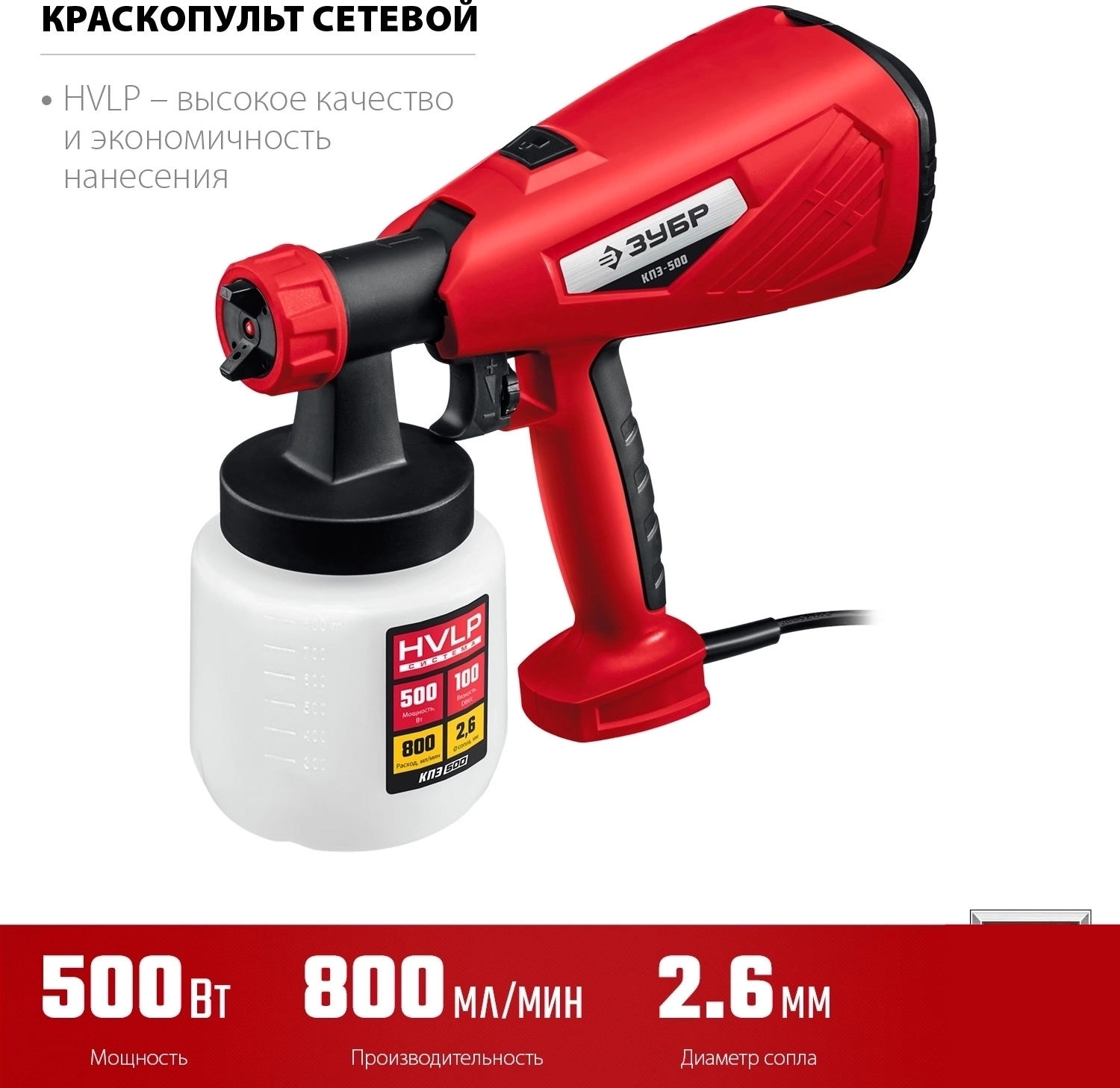 Воздушный ЗУБР 500 Вт, краскопульт электрический