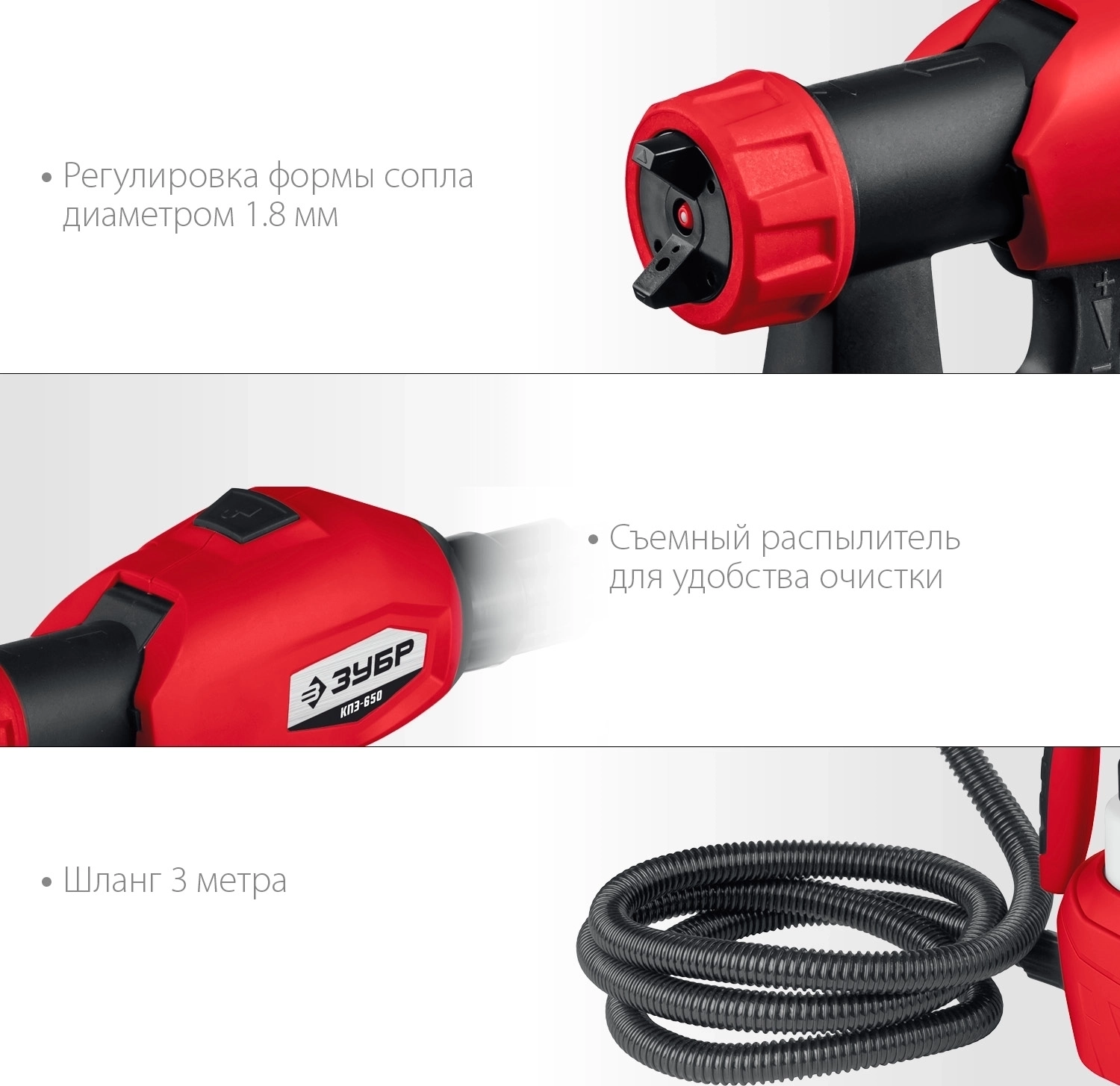 - Регулировка формы сопла для горизонтальной и вертикальной окраски, а также для труднодоступных поверхностей