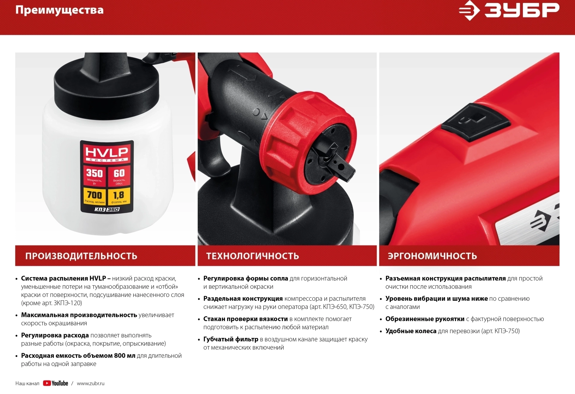 Воздушный ЗУБР 750 Вт, краскопульт электрический
