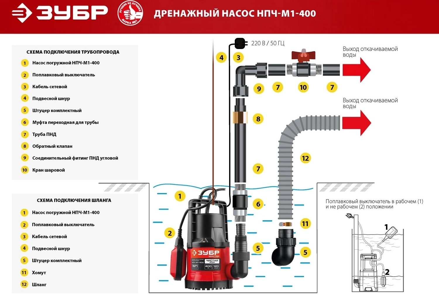 Дренажный насос с минимальным уровнем откачки ЗУБР 400 Вт