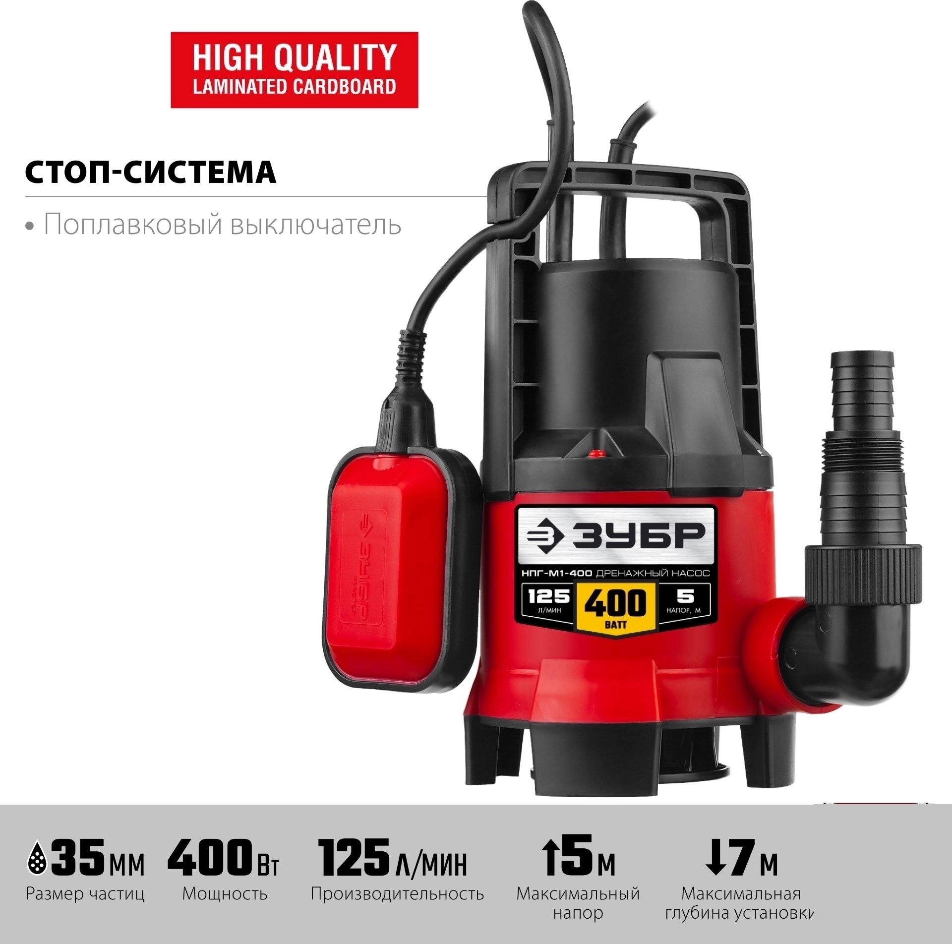 Дренажный насос для грязной воды ЗУБР 400 Вт