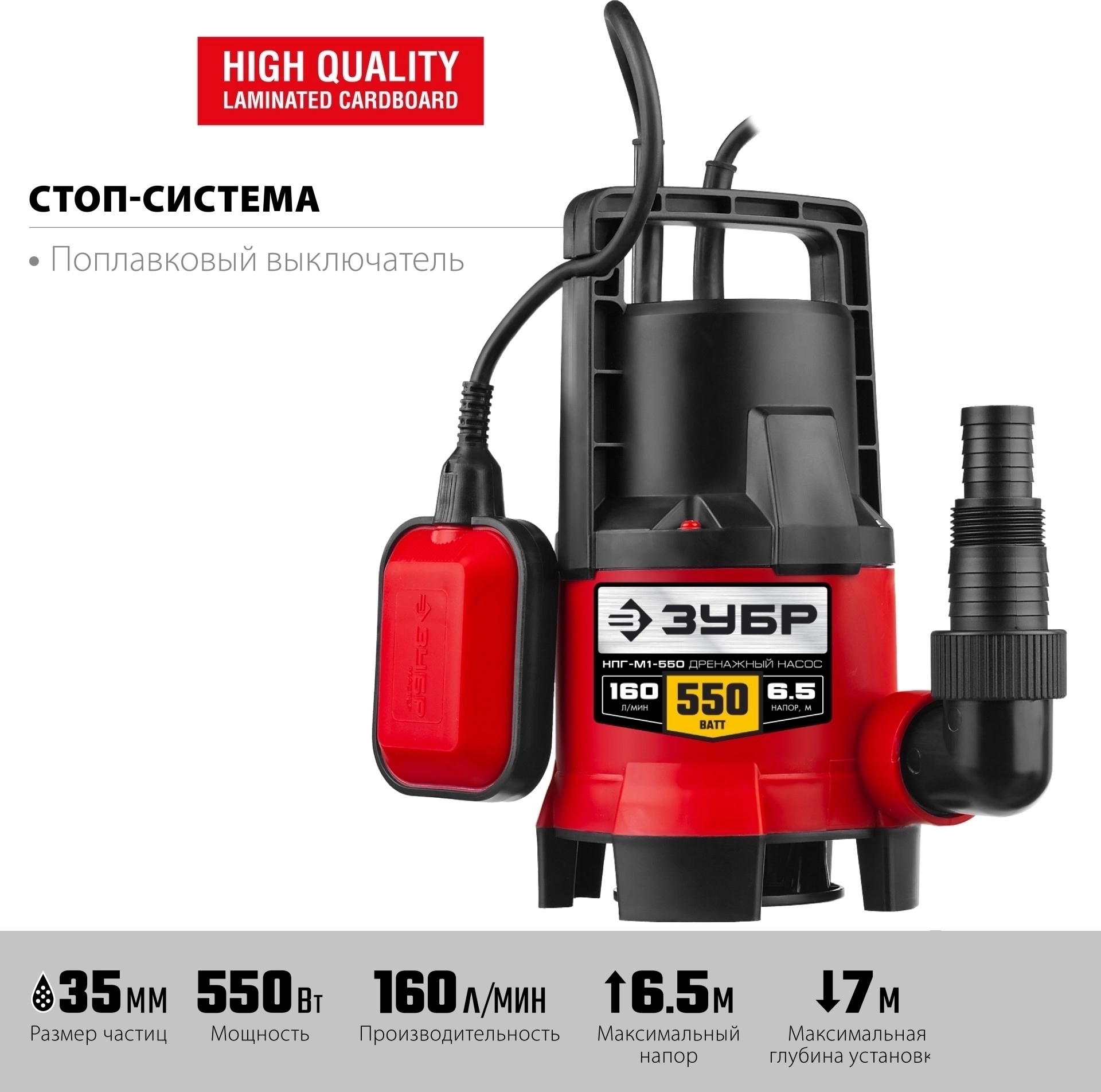 Дренажный насос для грязной воды ЗУБР 550 Вт