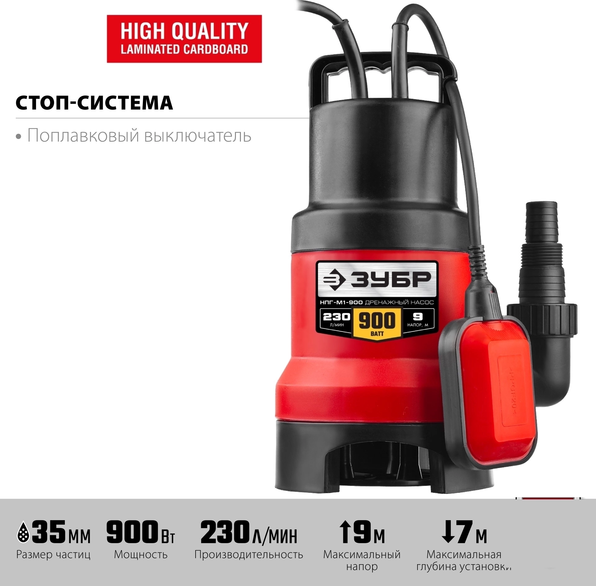 Дренажный насос для грязной воды ЗУБР 900 Вт