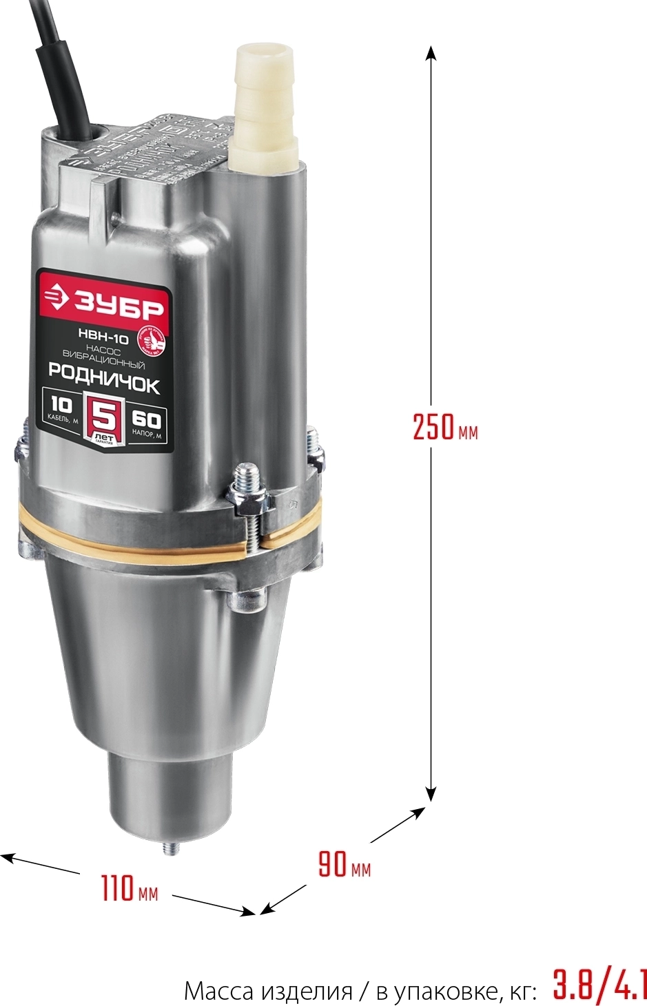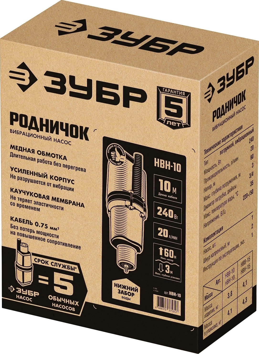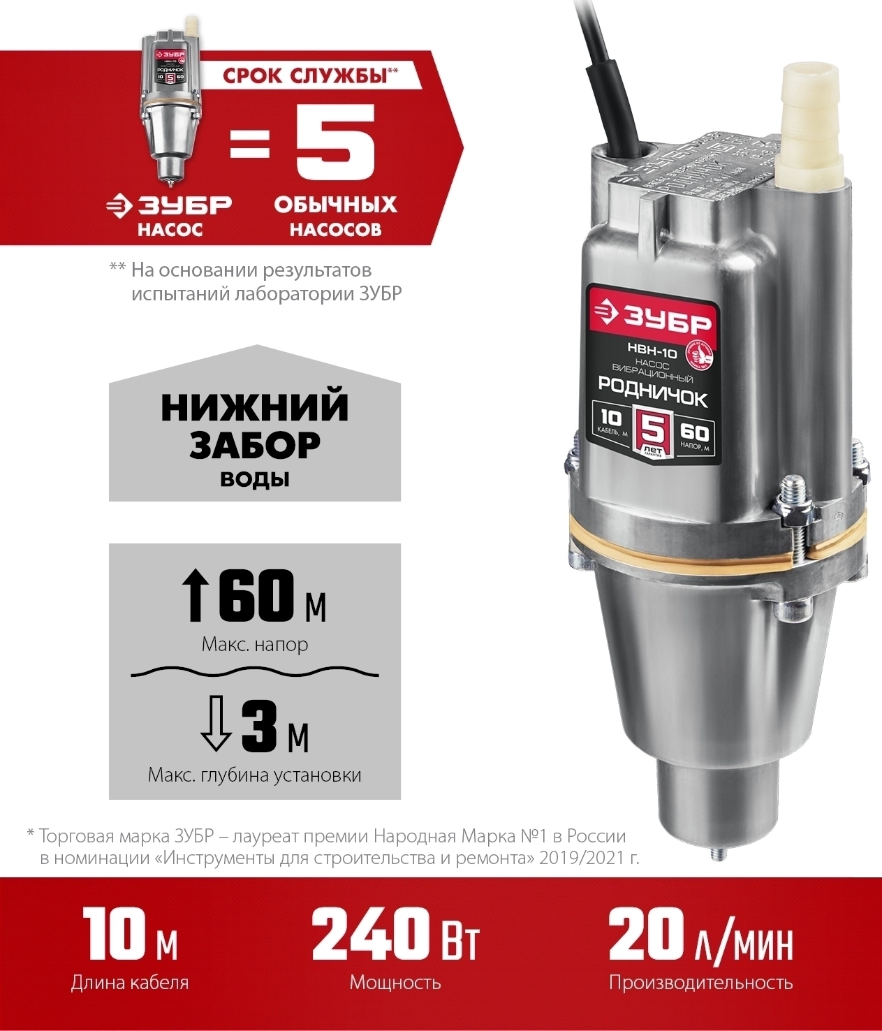 Вибрационный насос с нижним забором ЗУБР Родничок-Н, 10 м