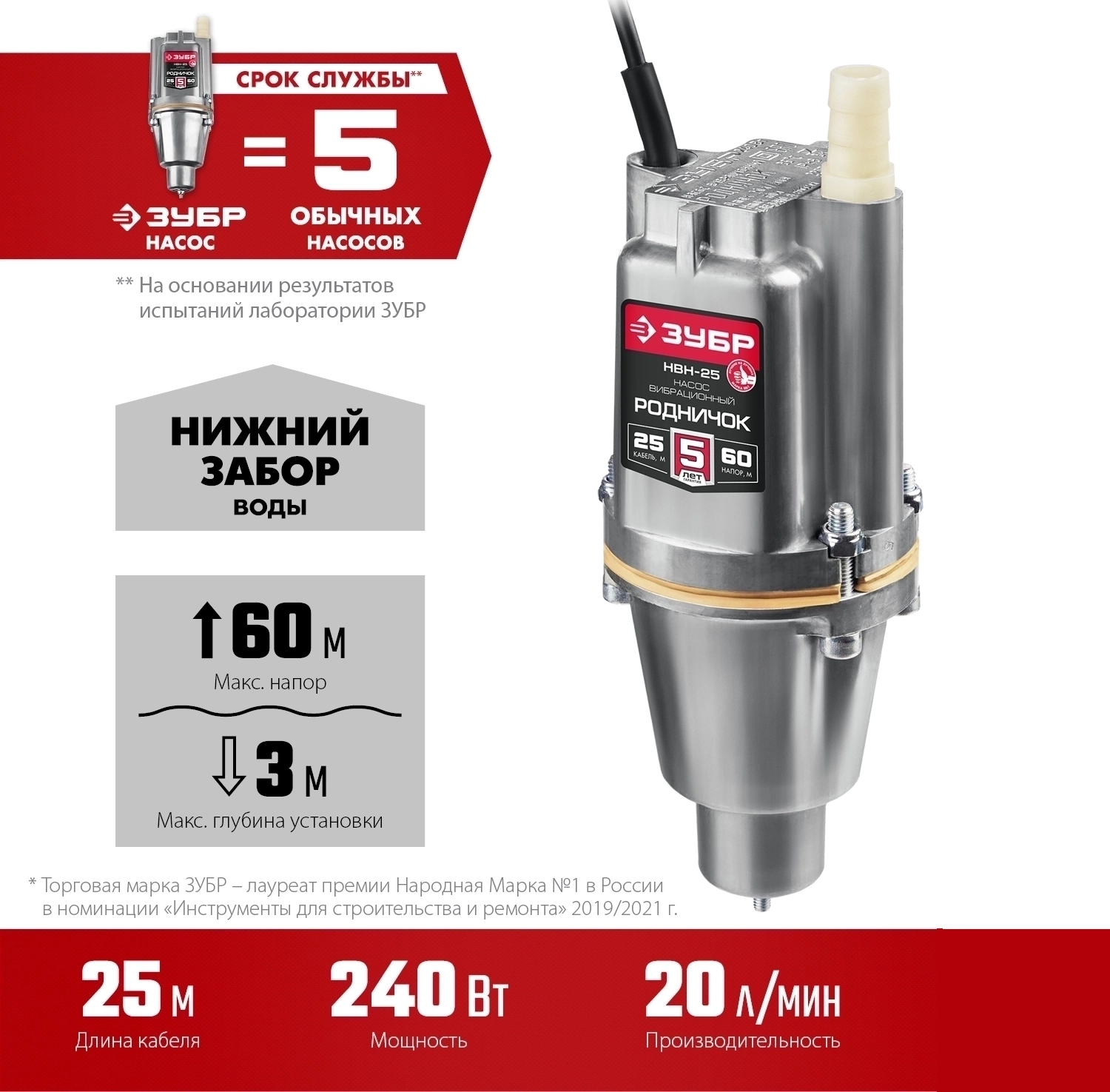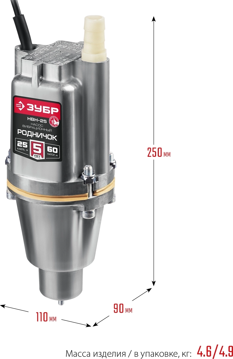 Вибрационный насос с нижним забором ЗУБР Родничок-Н, 25 м