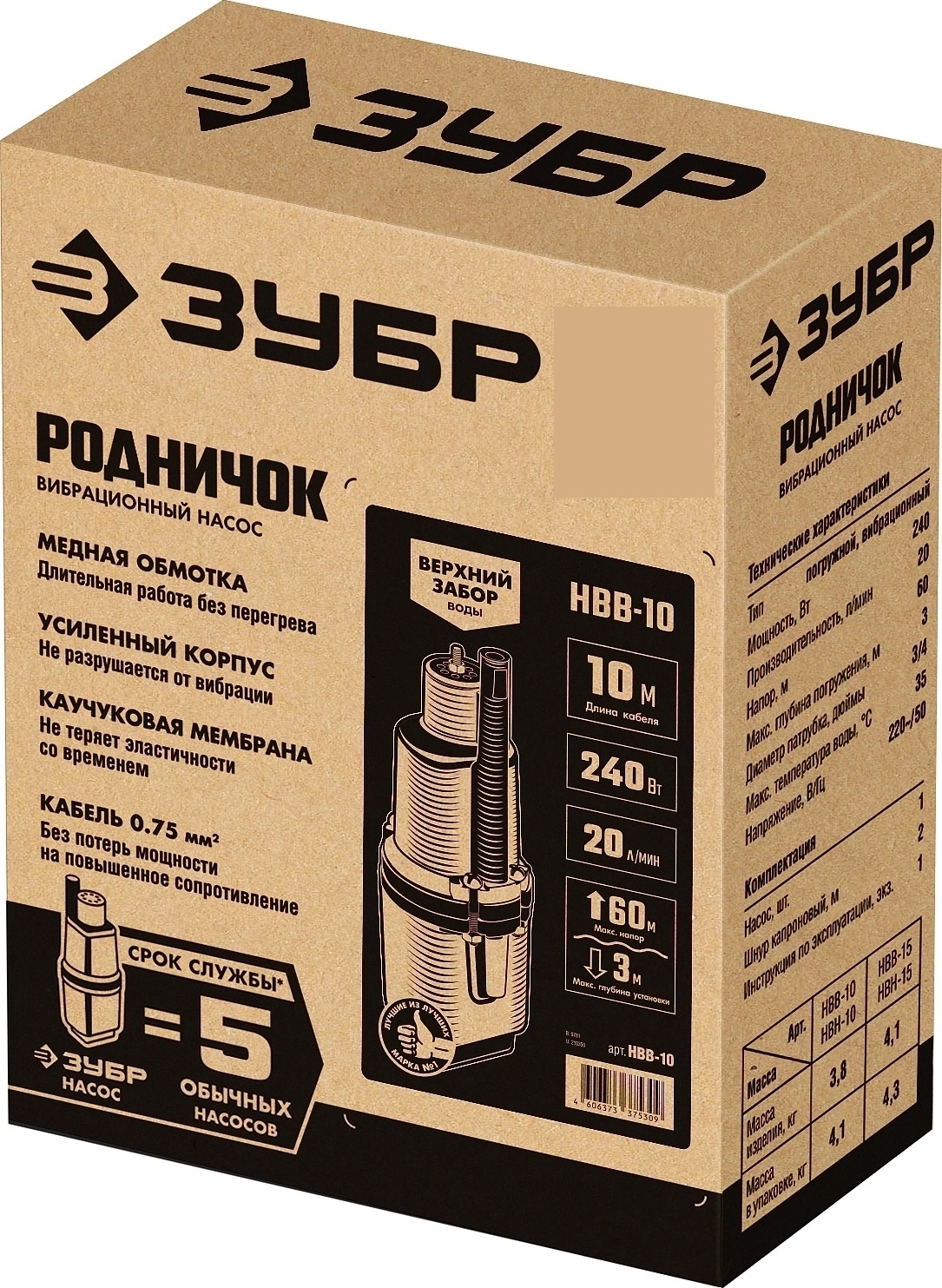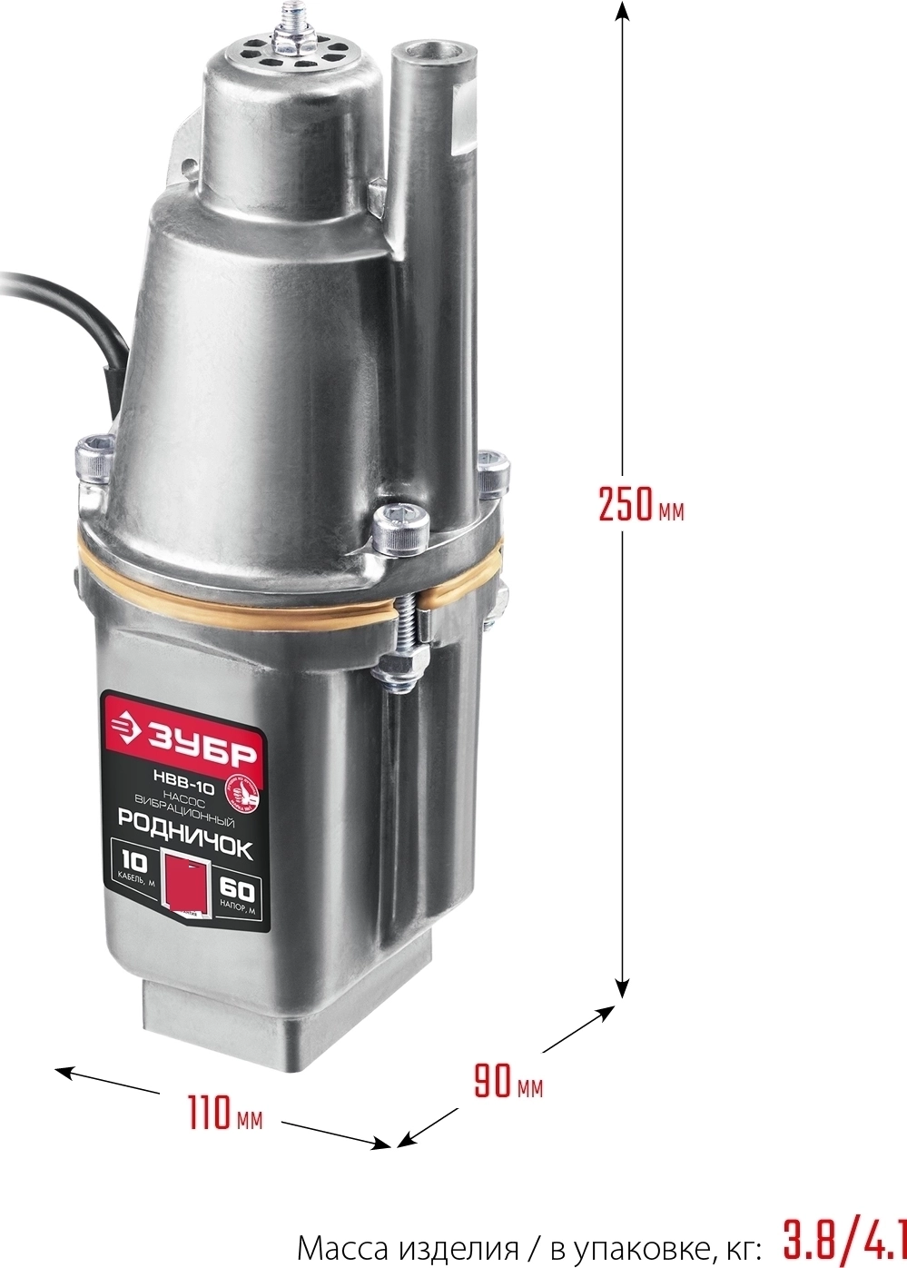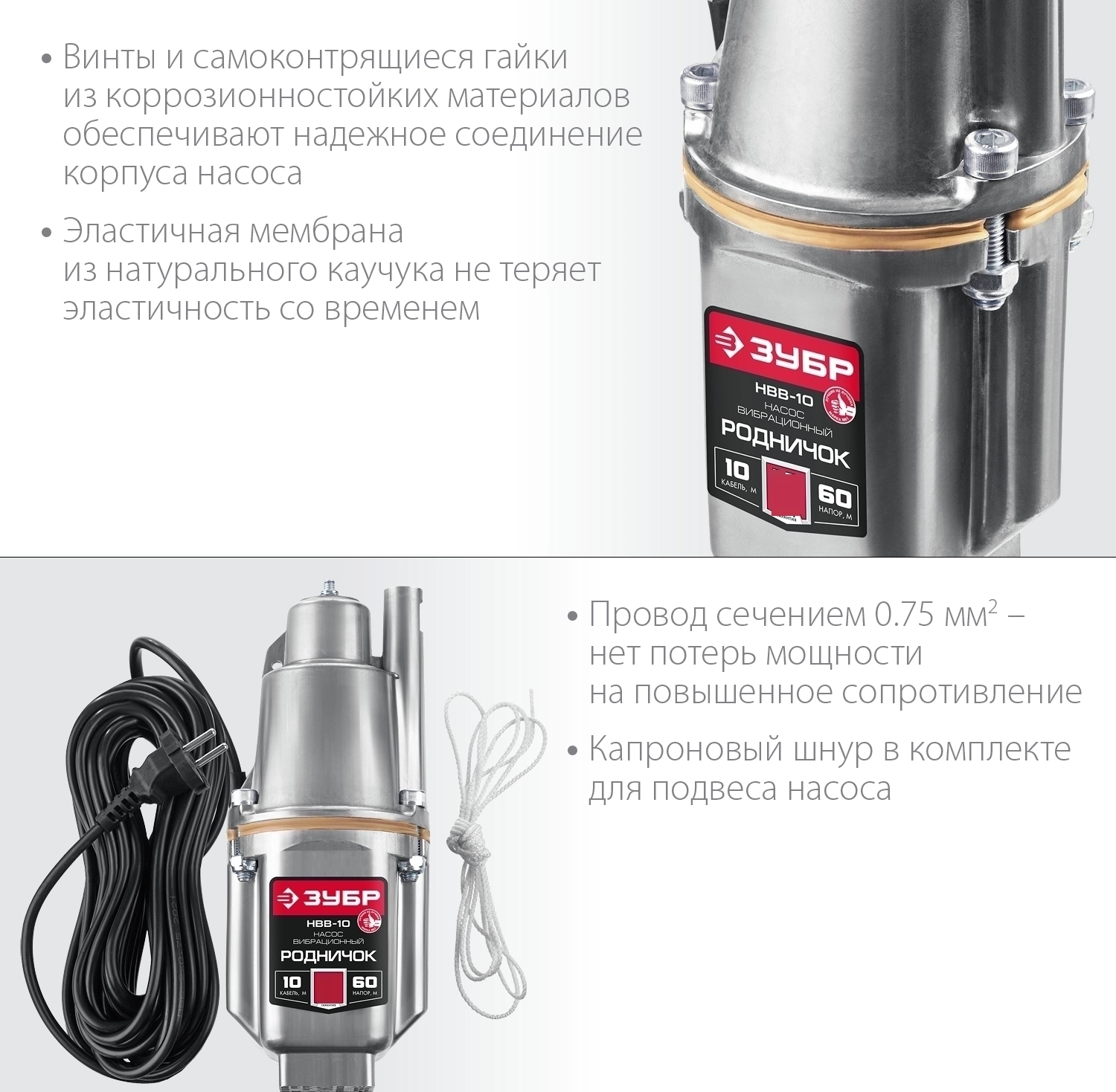 Вибрационный насос с верхним забором ЗУБР Родничок-В, 10 м
