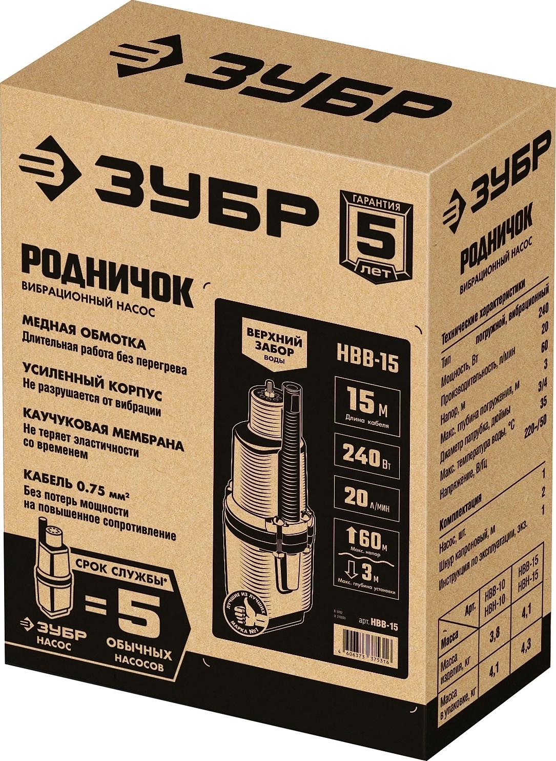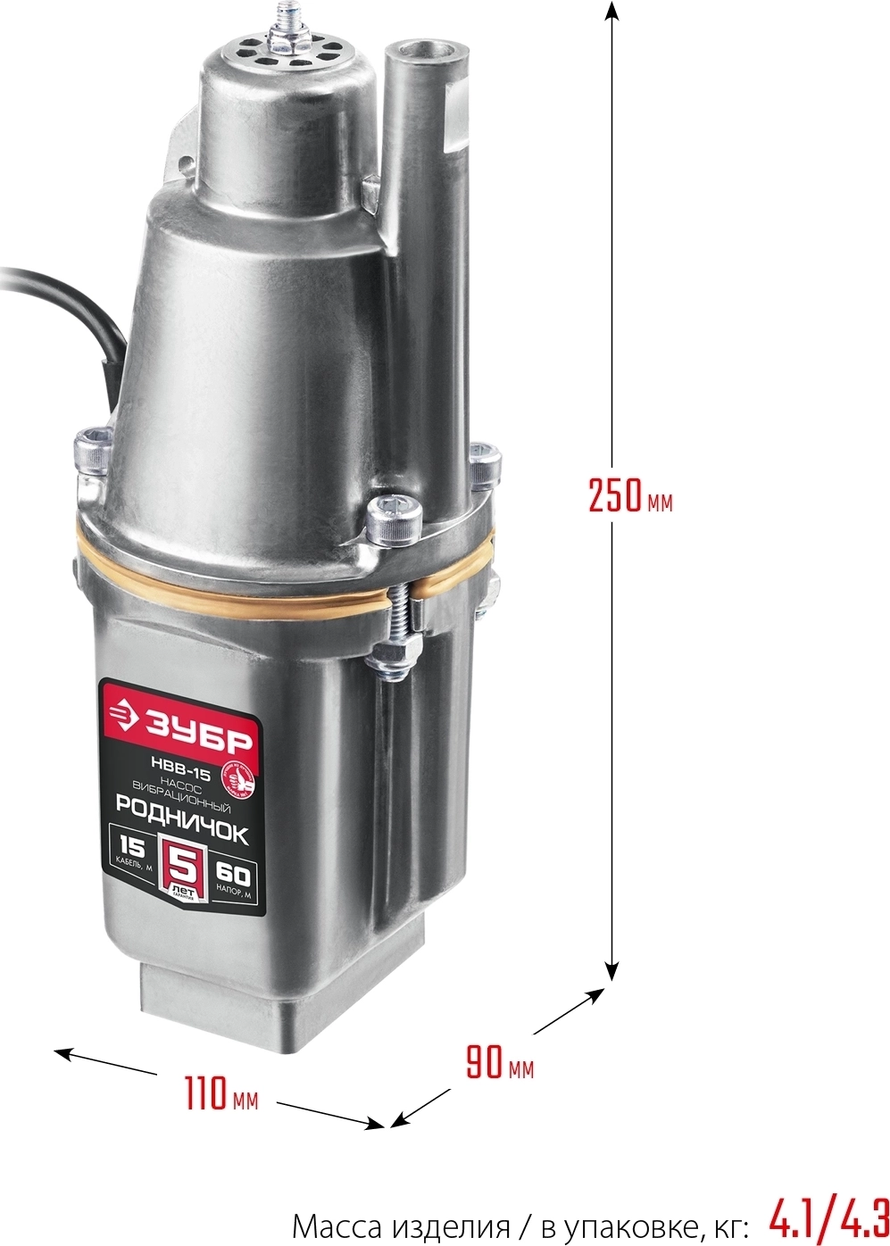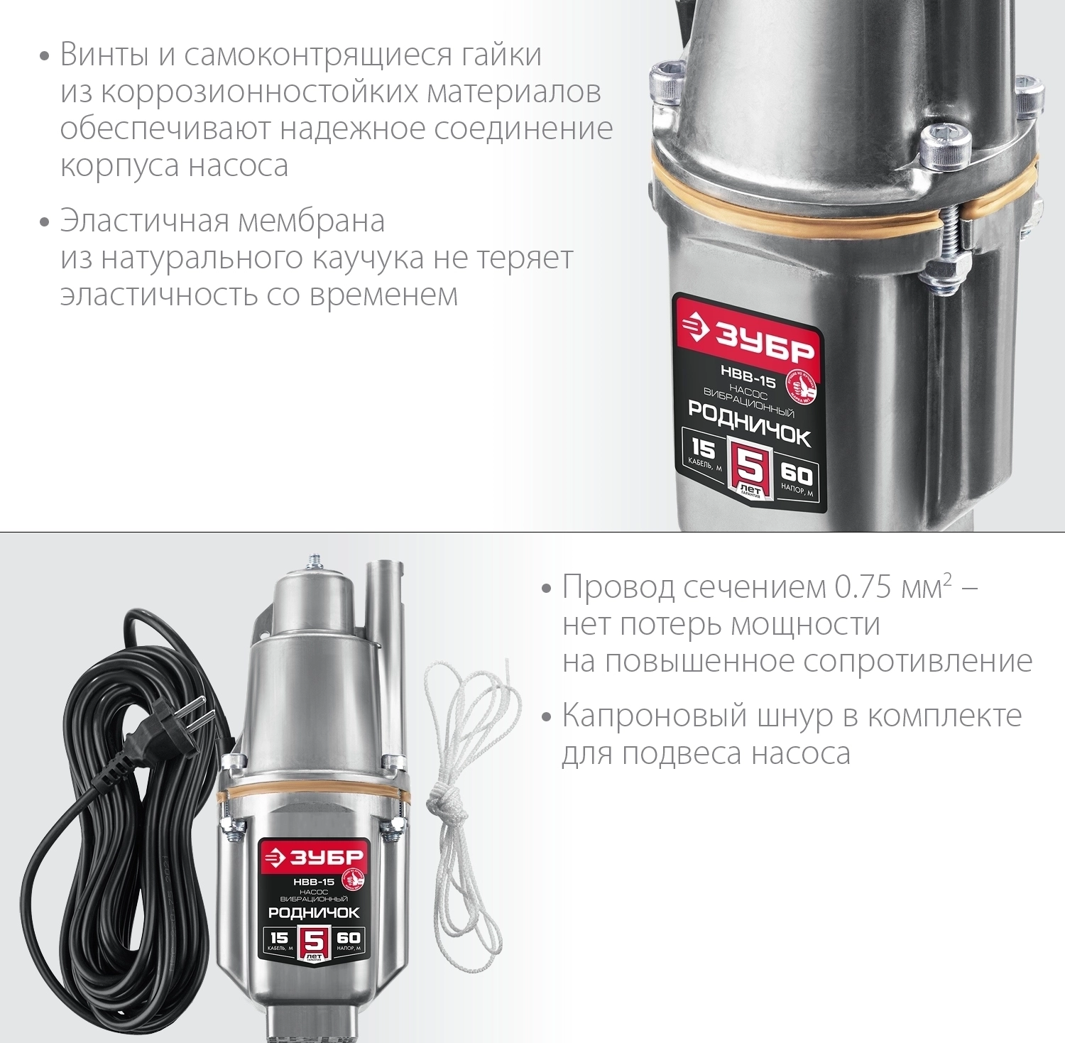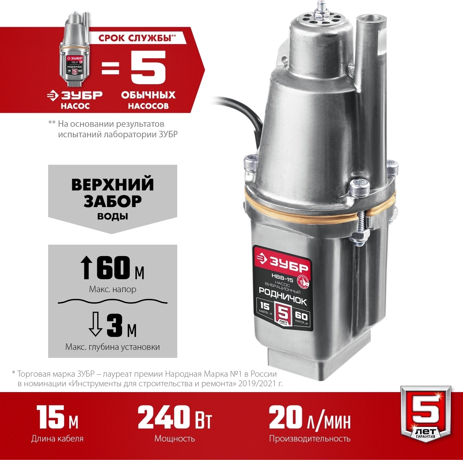Вибрационный насос с верхним забором ЗУБР Родничок-В, 15 м