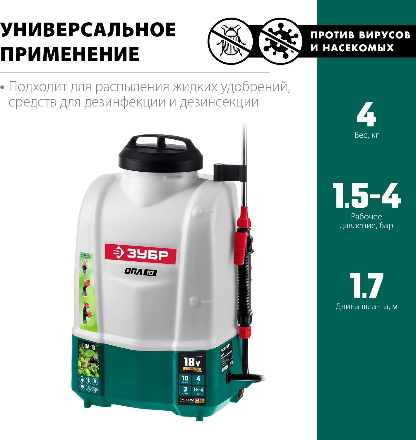Аккумуляторный опрыскиватель ЗУБР 10 л