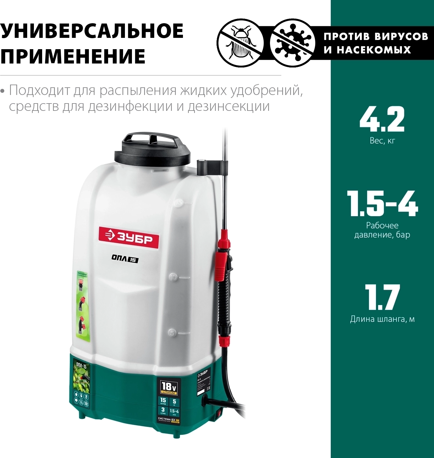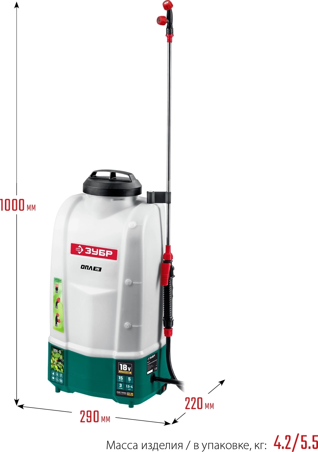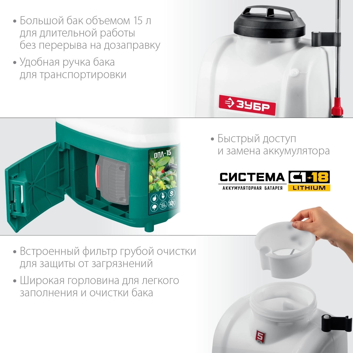 Аккумуляторный опрыскиватель ЗУБР 15 л
