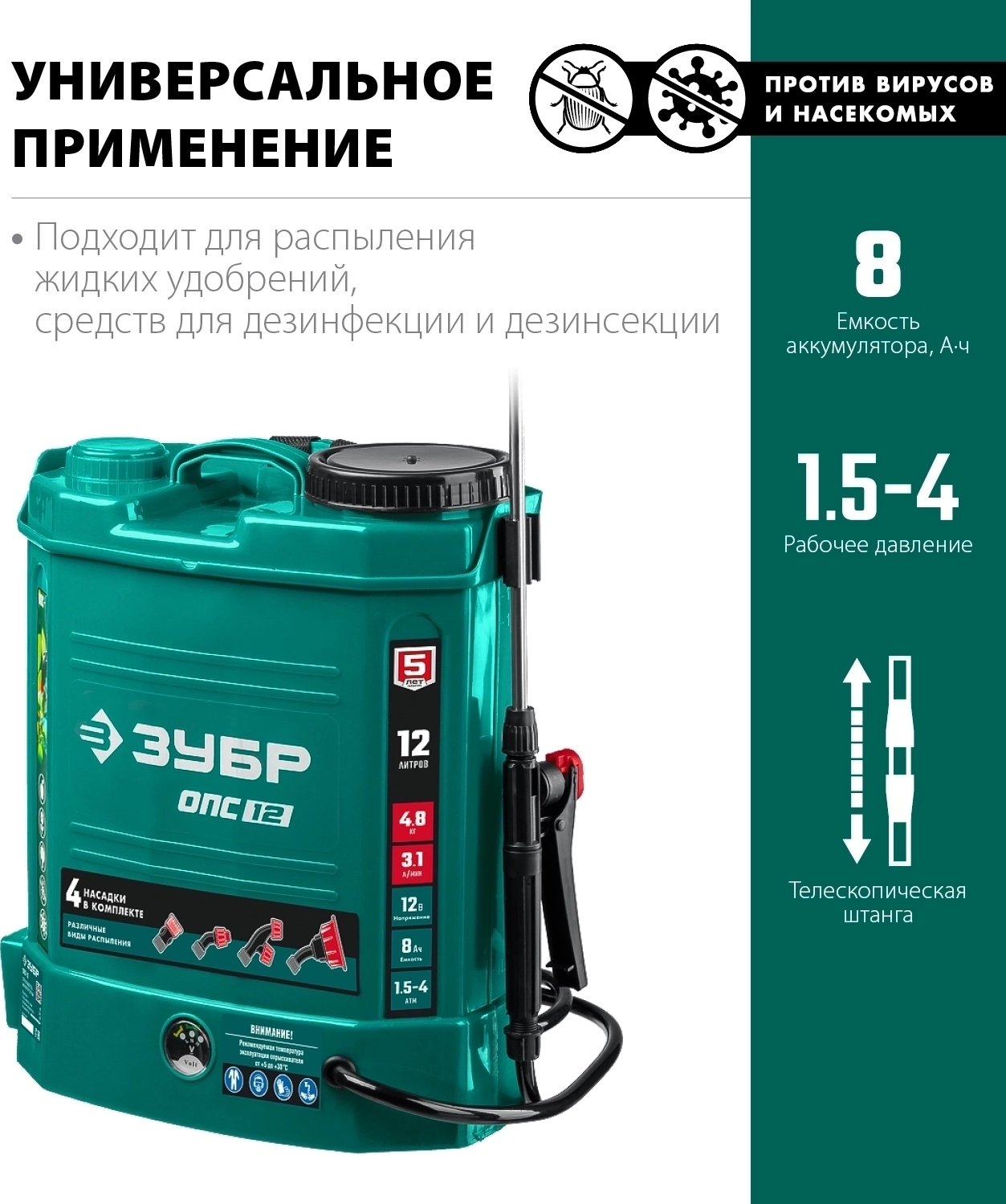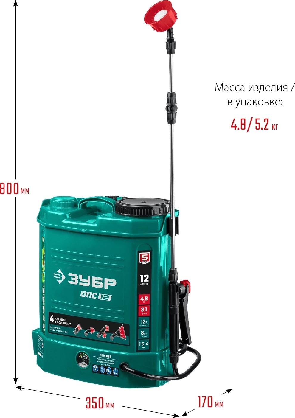 Аккумуляторный опрыскиватель ЗУБР 12 л