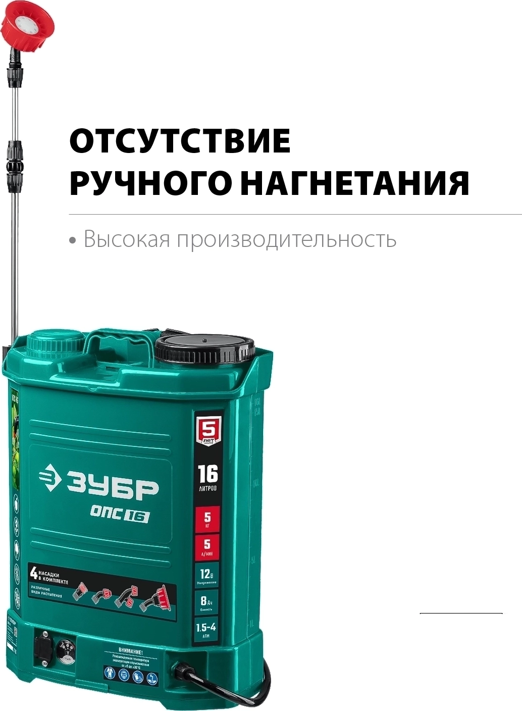 Аккумуляторный опрыскиватель ЗУБР 16 л