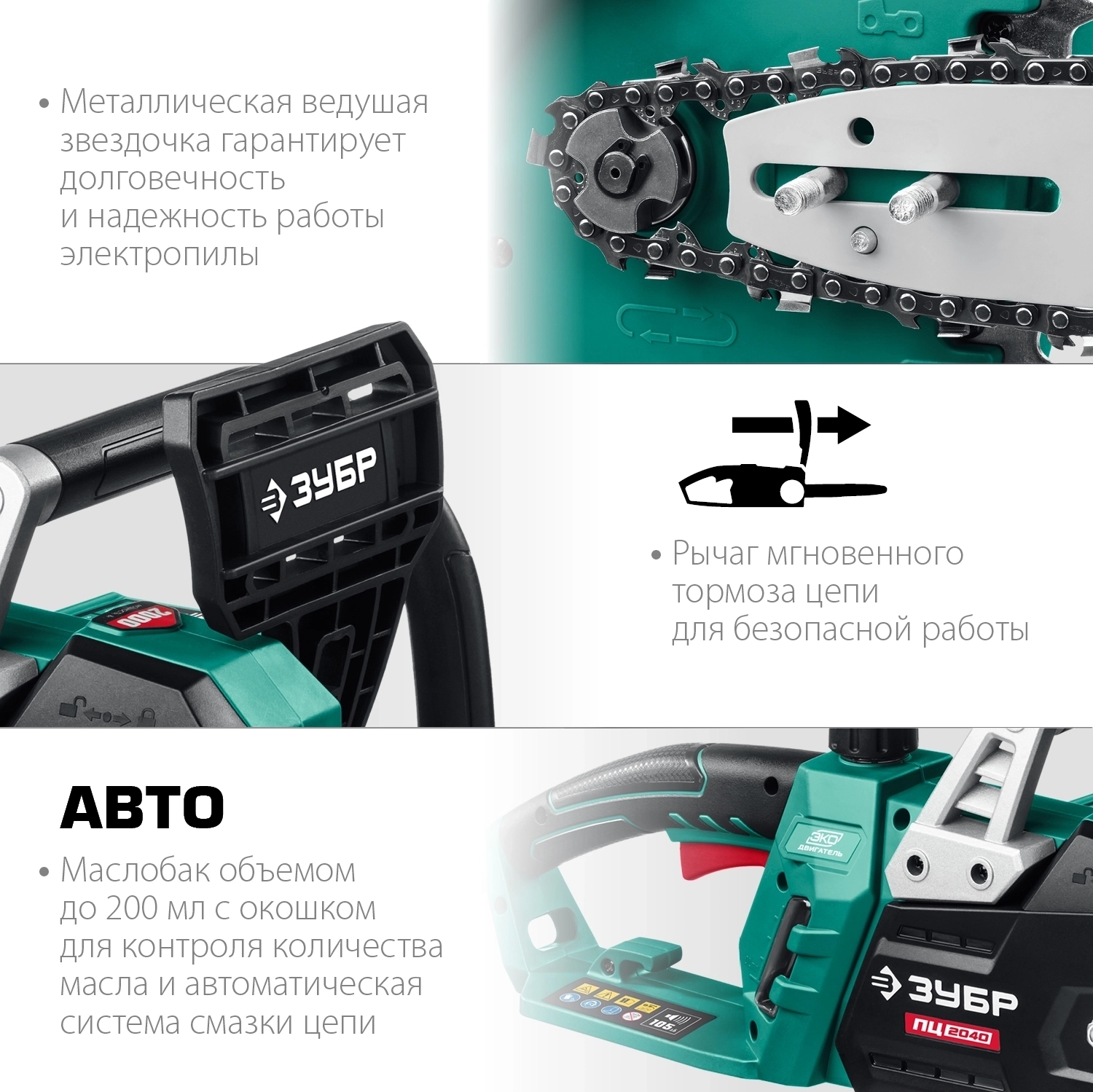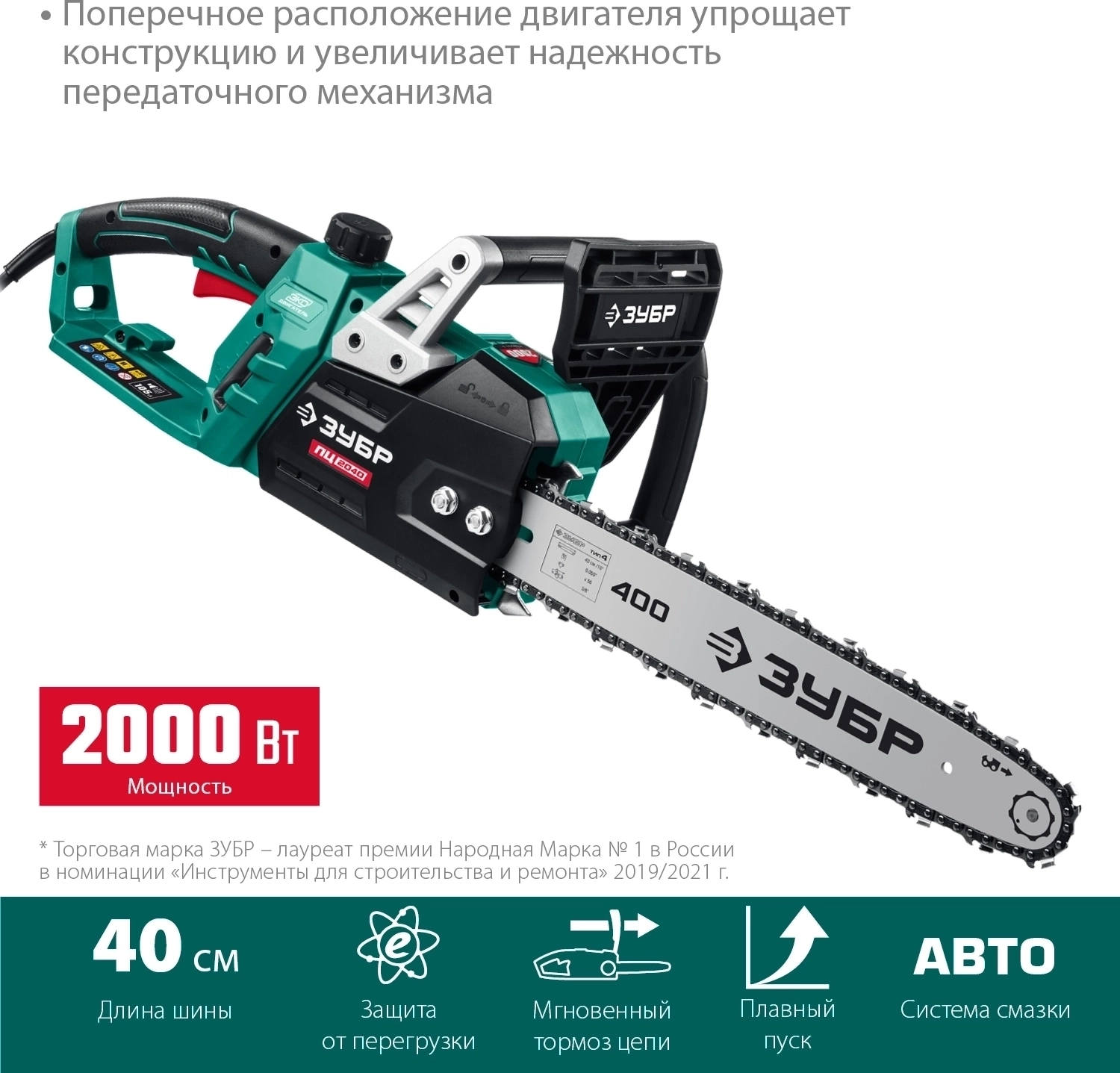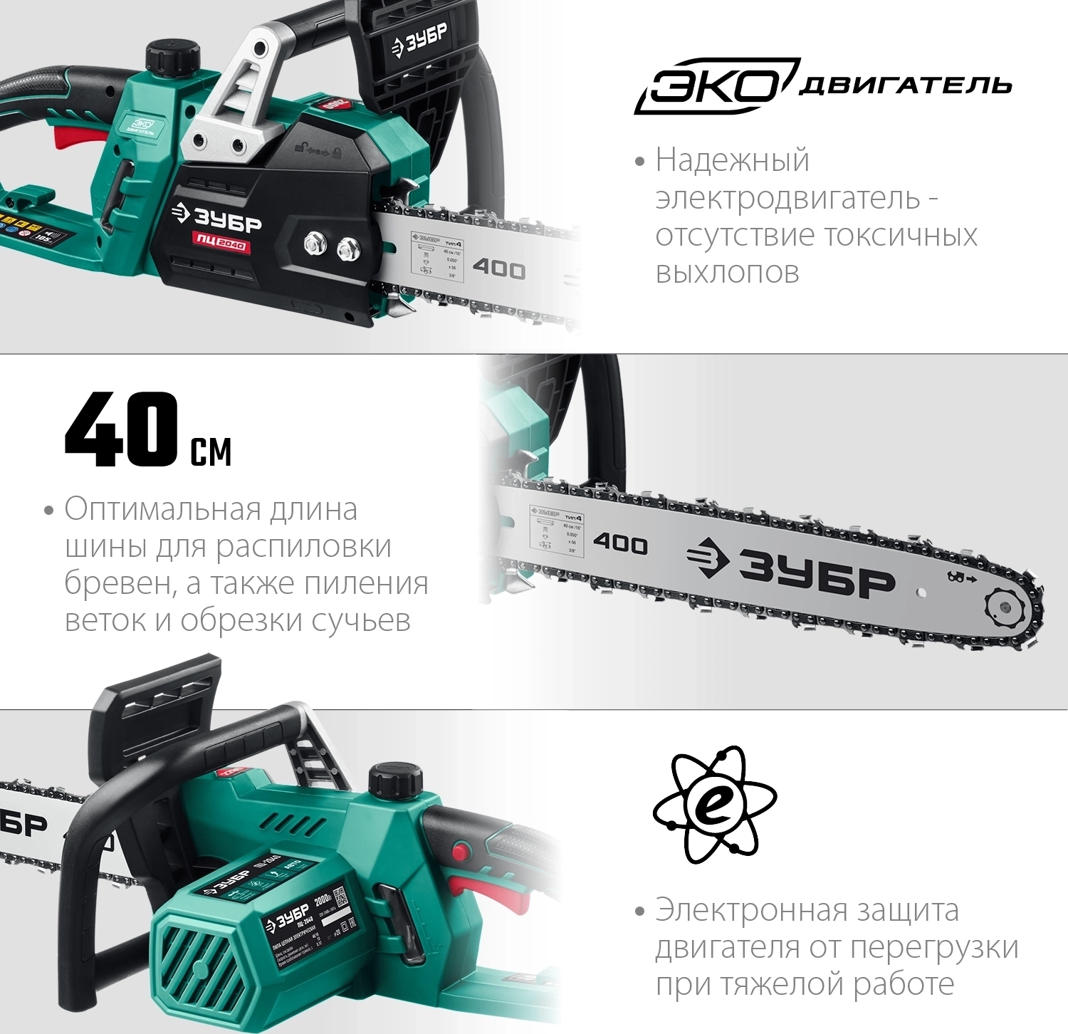 Электрическая цепная пила ЗУБР 2000 Вт, 40 см шина