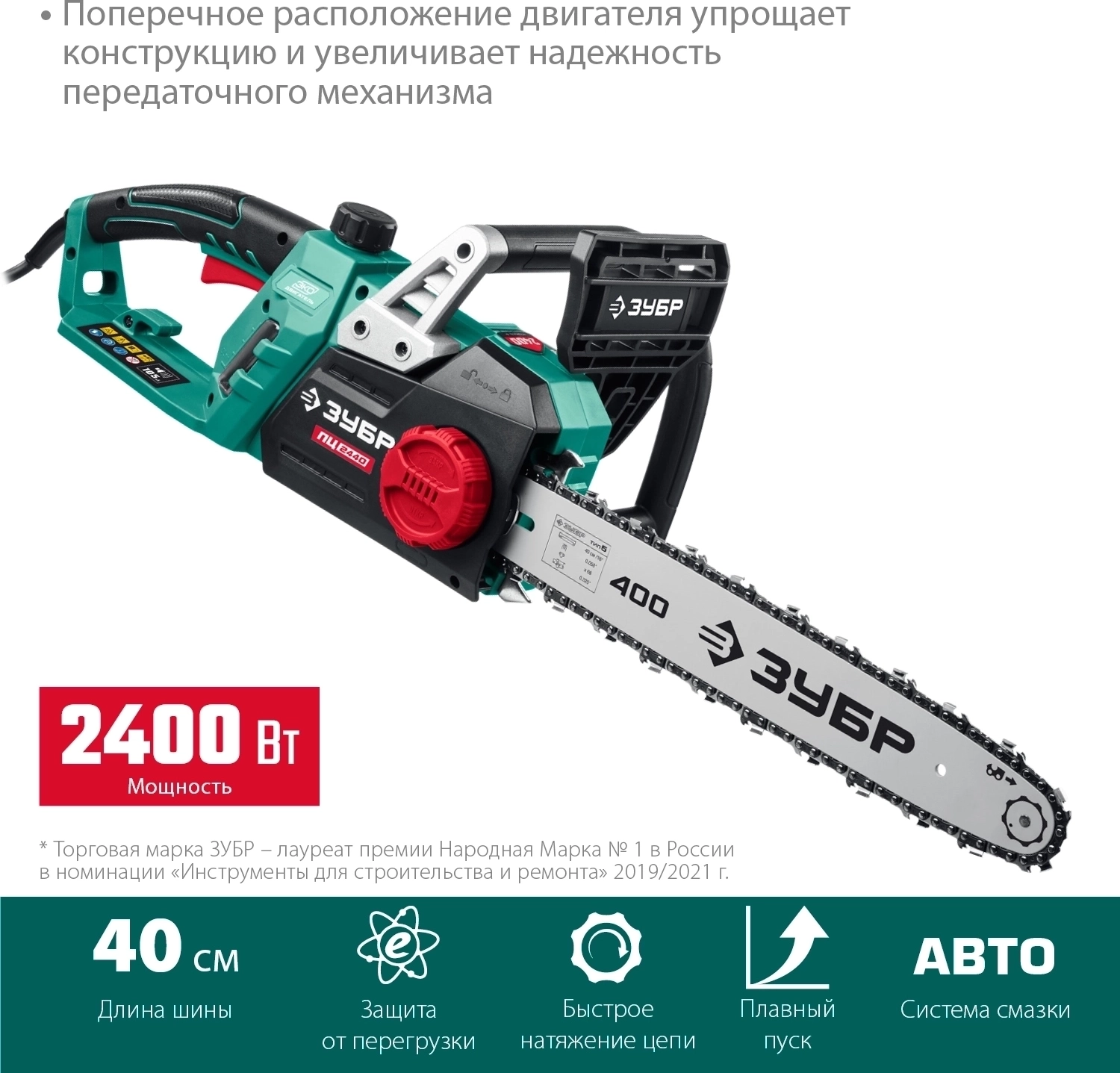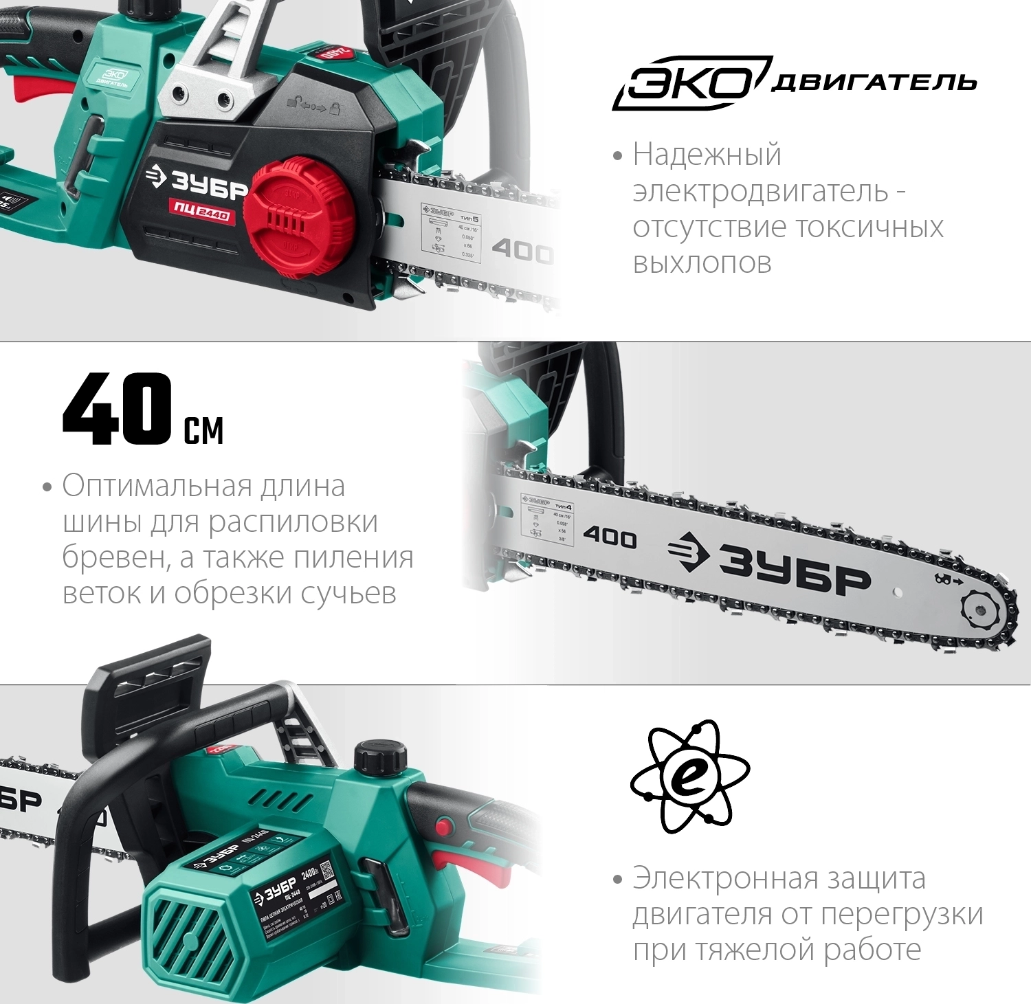 Электрическая цепная пила ЗУБР 2400 Вт, 40 см шина