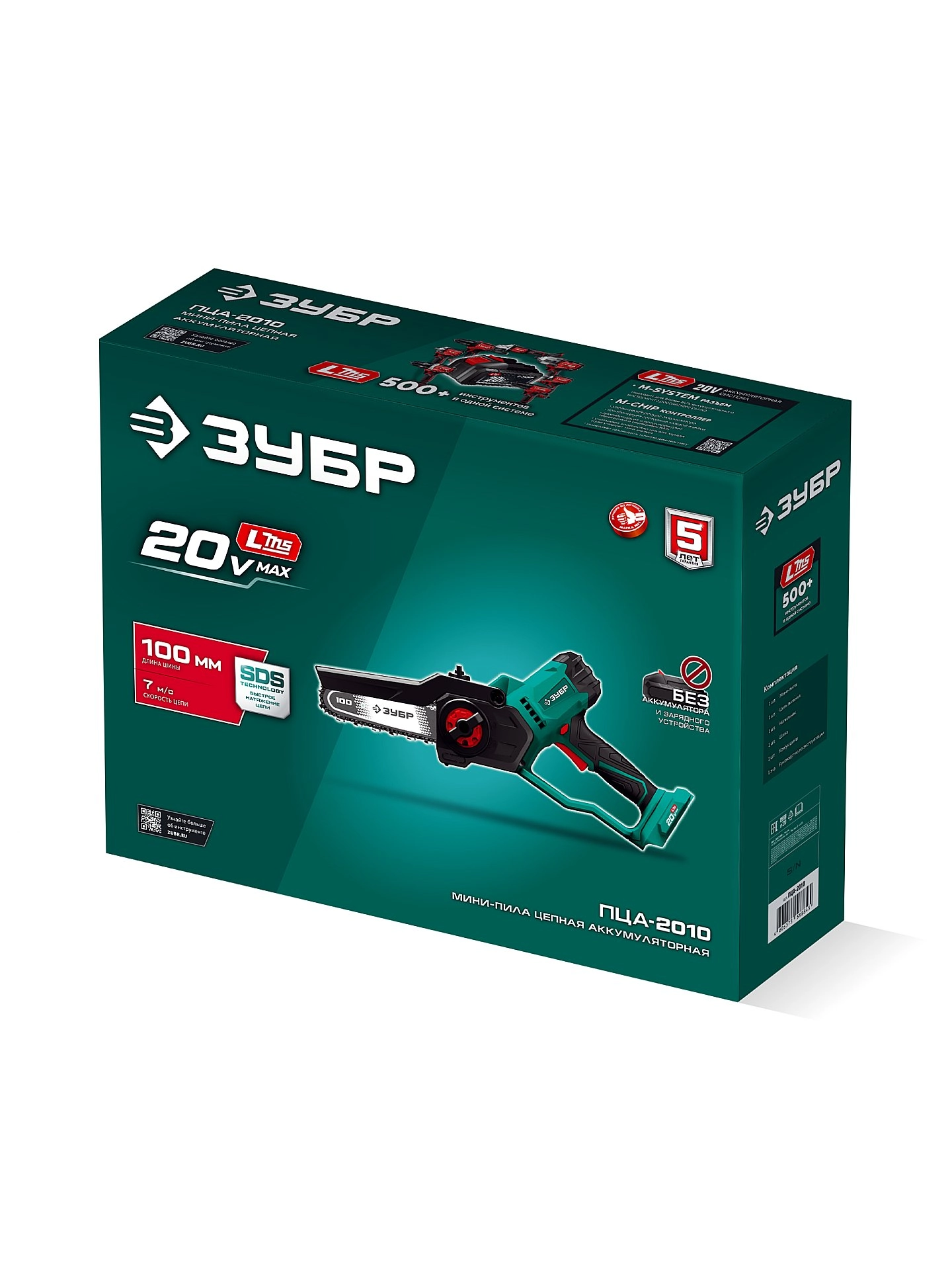 Мини-пила цепная аккумуляторная ЗУБР 20 В, 100 мм шина, без АКБ (LMS)