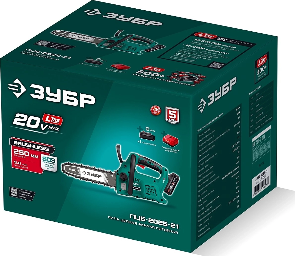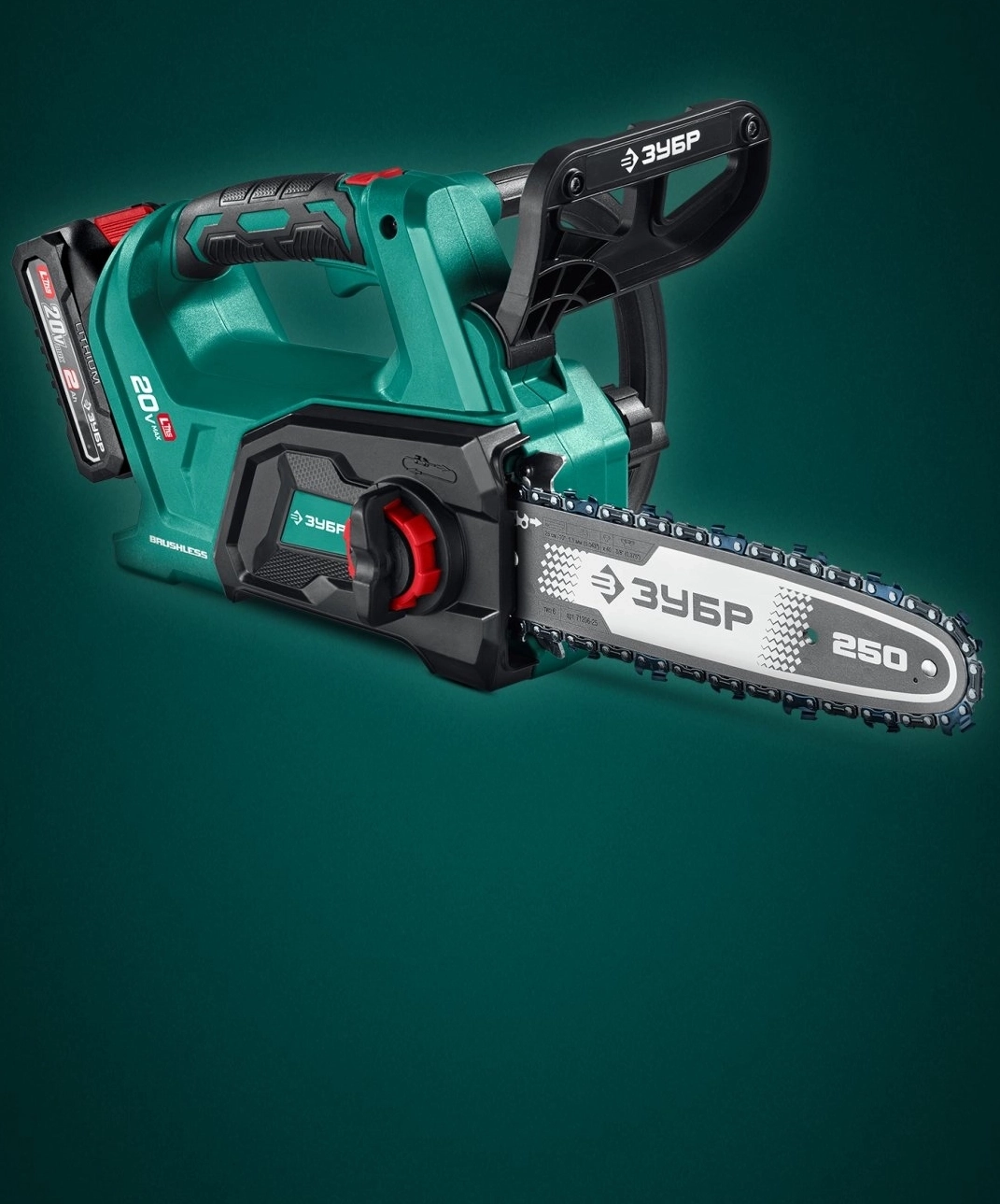 Пила цепная аккумуляторная ЗУБР 20 В, 250 мм шина, 1 АКБ LMS (2 Ач)