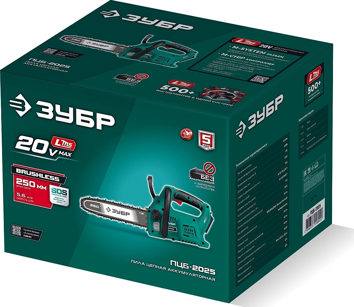 Пила цепная аккумуляторная ЗУБР 20 В, 250 мм шина, без АКБ (LMS)