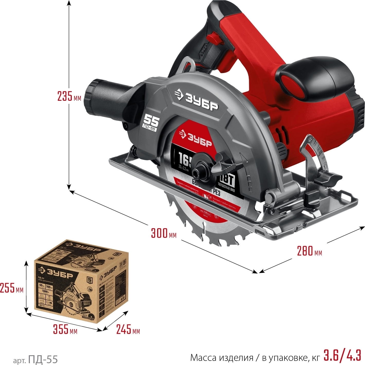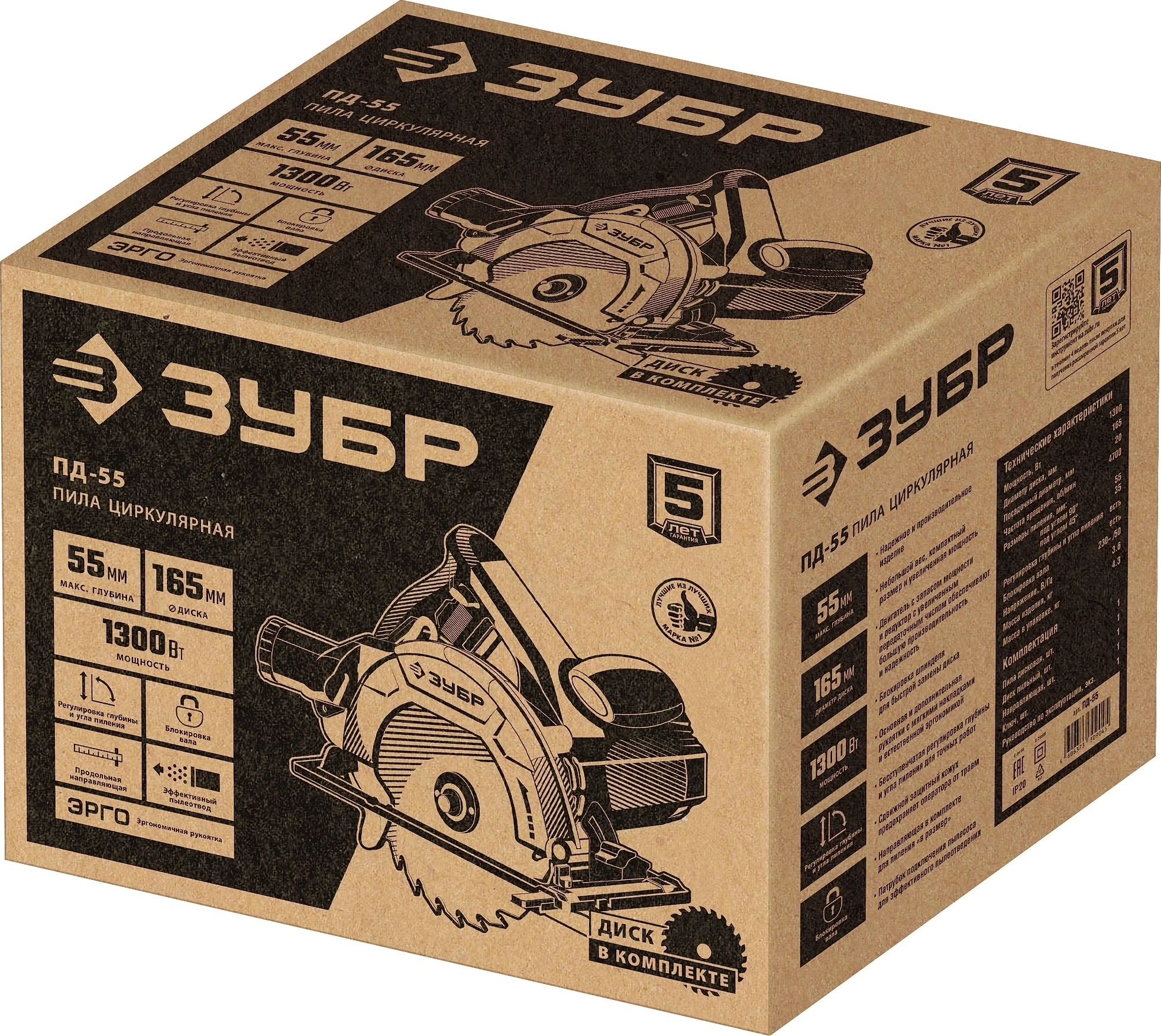 Циркулярная пила (дисковая) ЗУБР d 165 мм, 1300 Вт