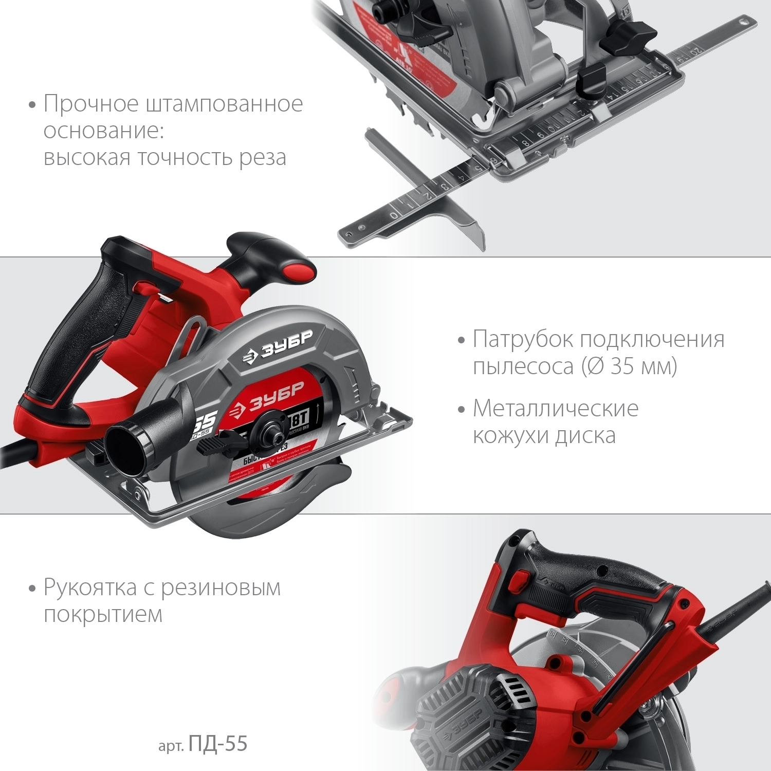 - Патрубок подключения пылесоса для эффективного пылеотвода