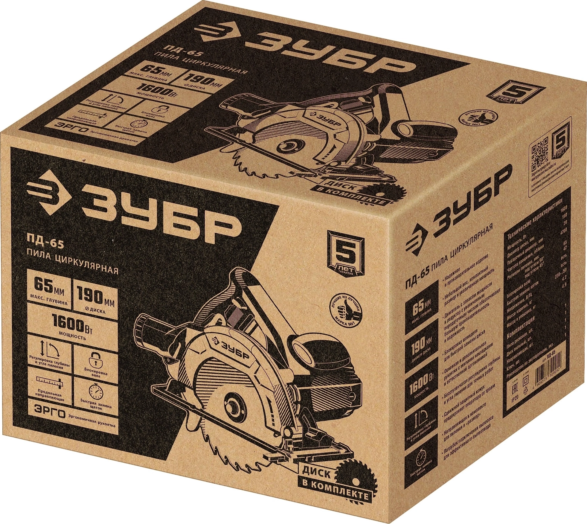 Циркулярная пила (дисковая) ЗУБР d 190 мм, 1600 Вт