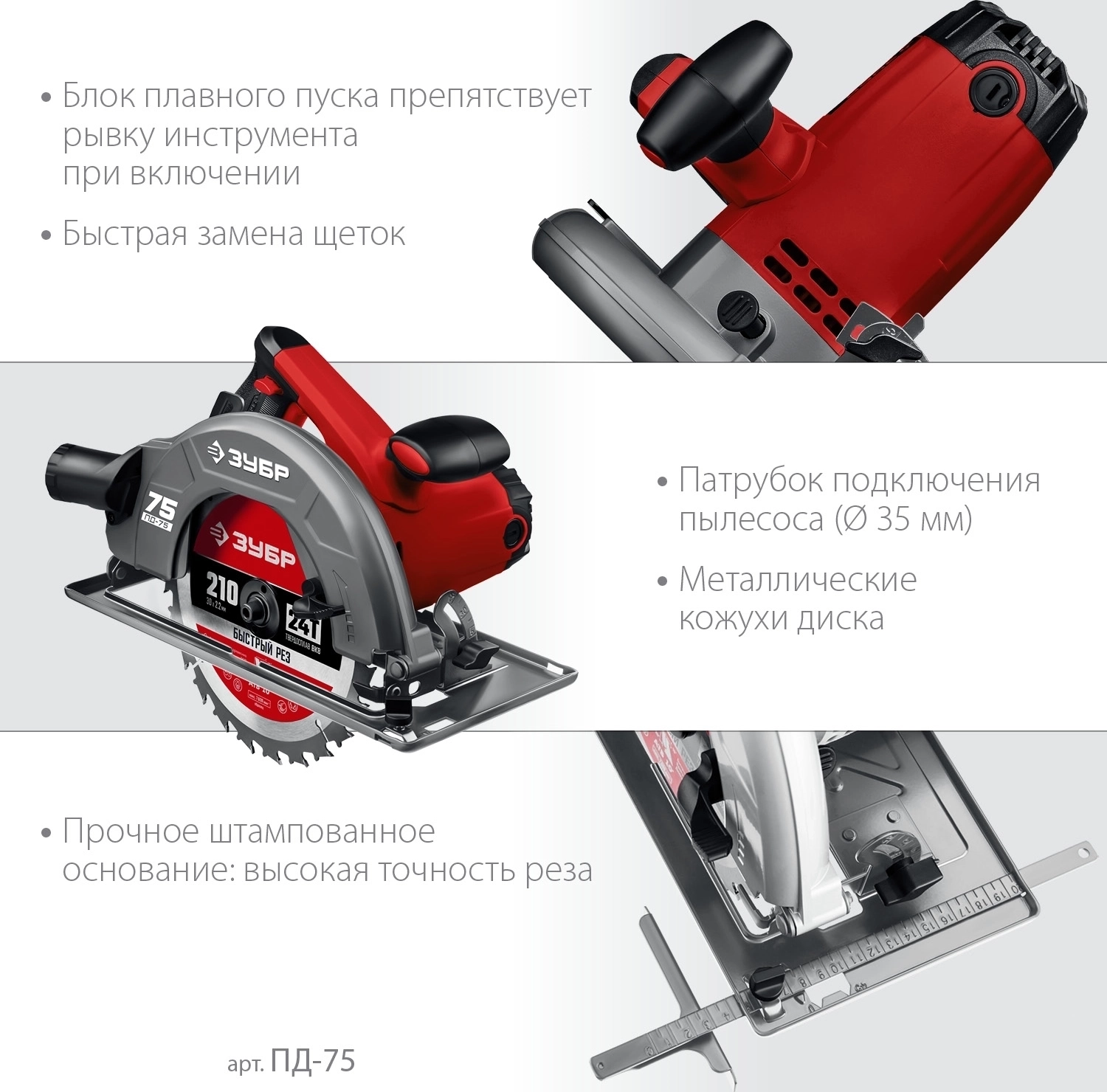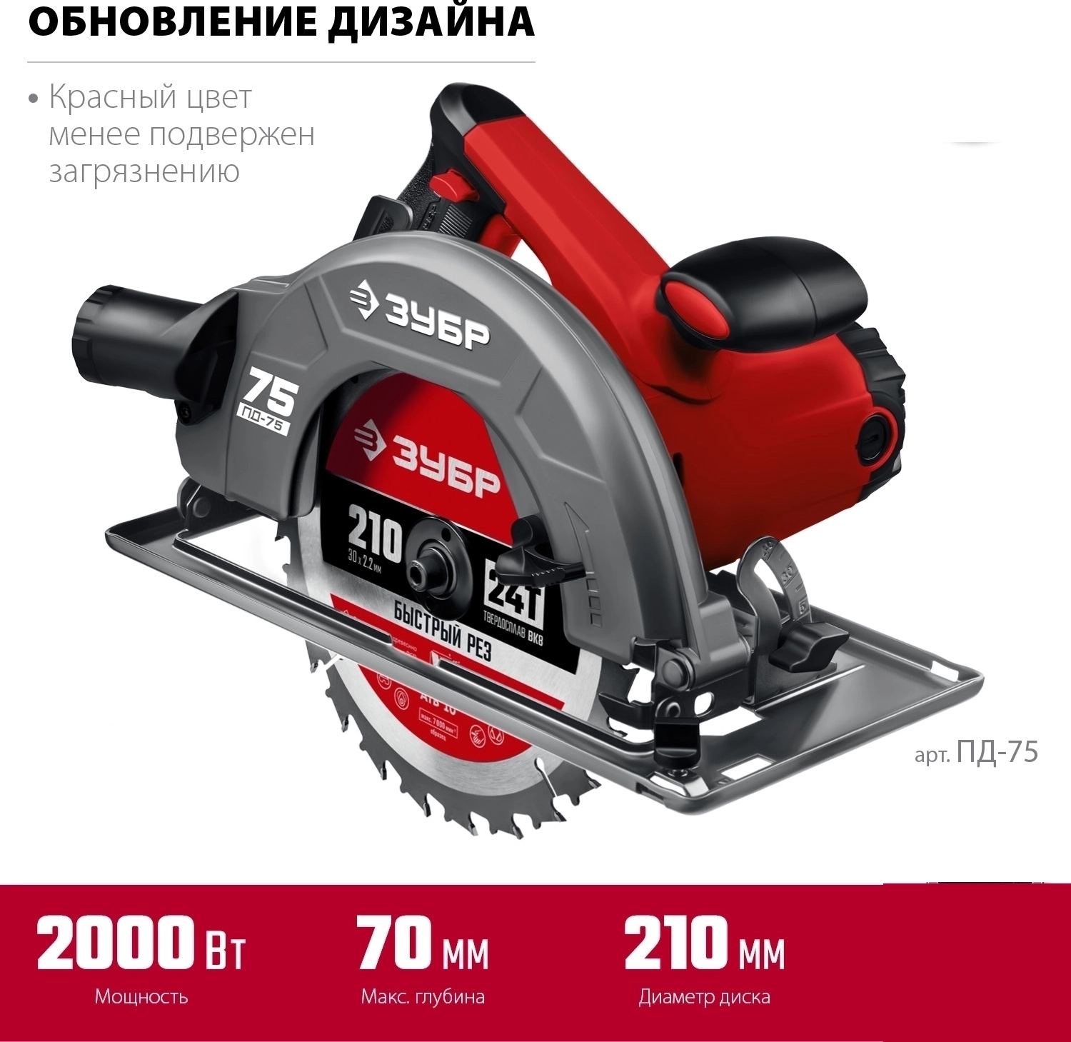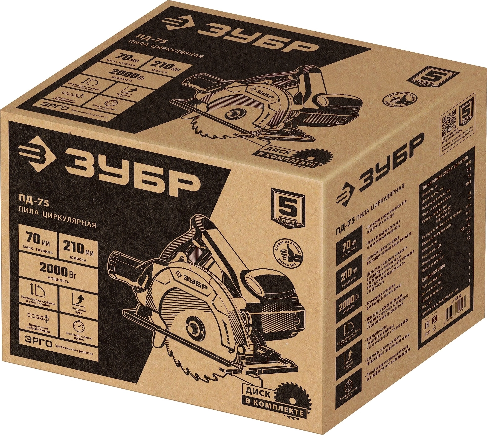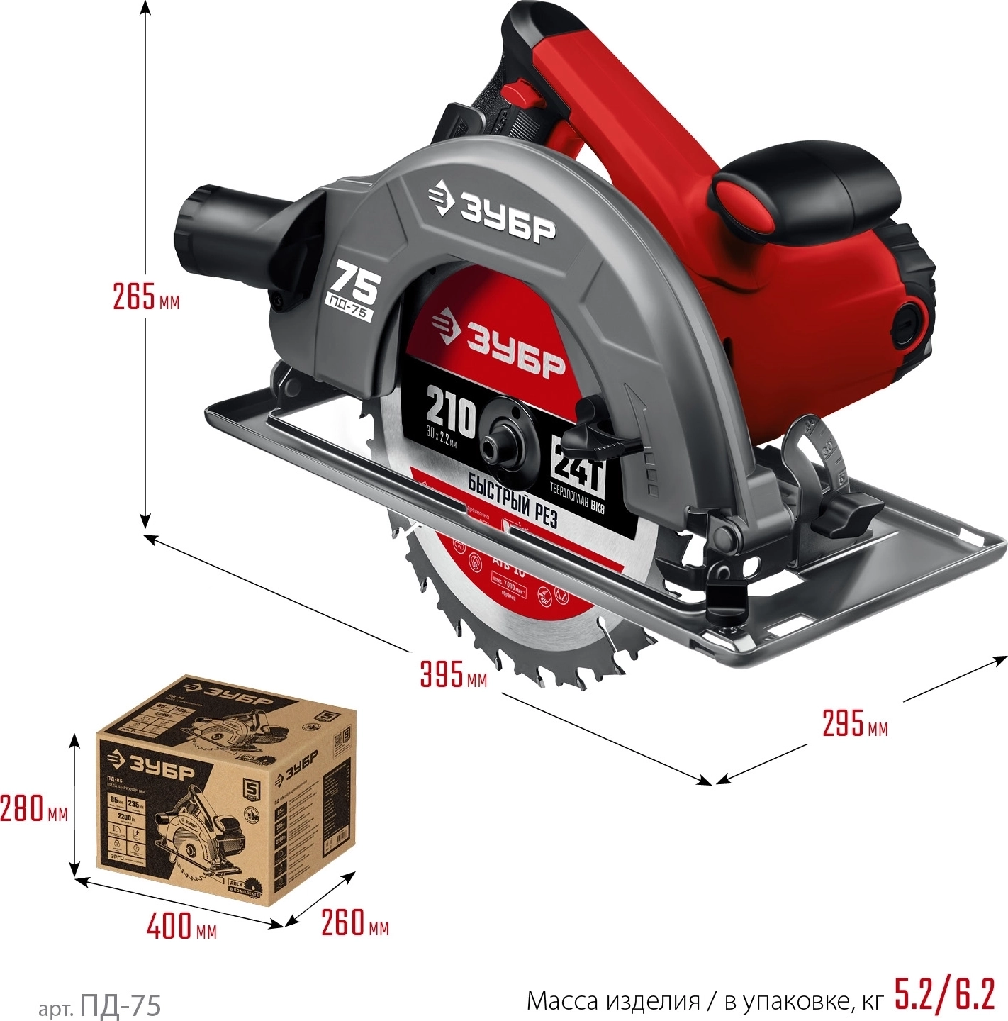 Циркулярная пила (дисковая) ЗУБР d 210 мм, 2000 Вт