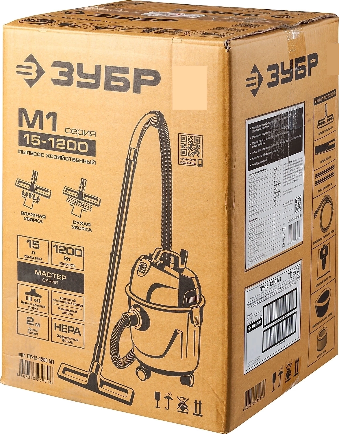 Хозяйственный пылесос ЗУБР М1, 15 л, 1200 Вт