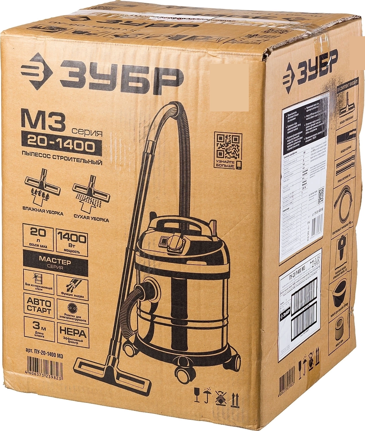 Строительный пылесос ЗУБР М3, 20 л, 1400 Вт