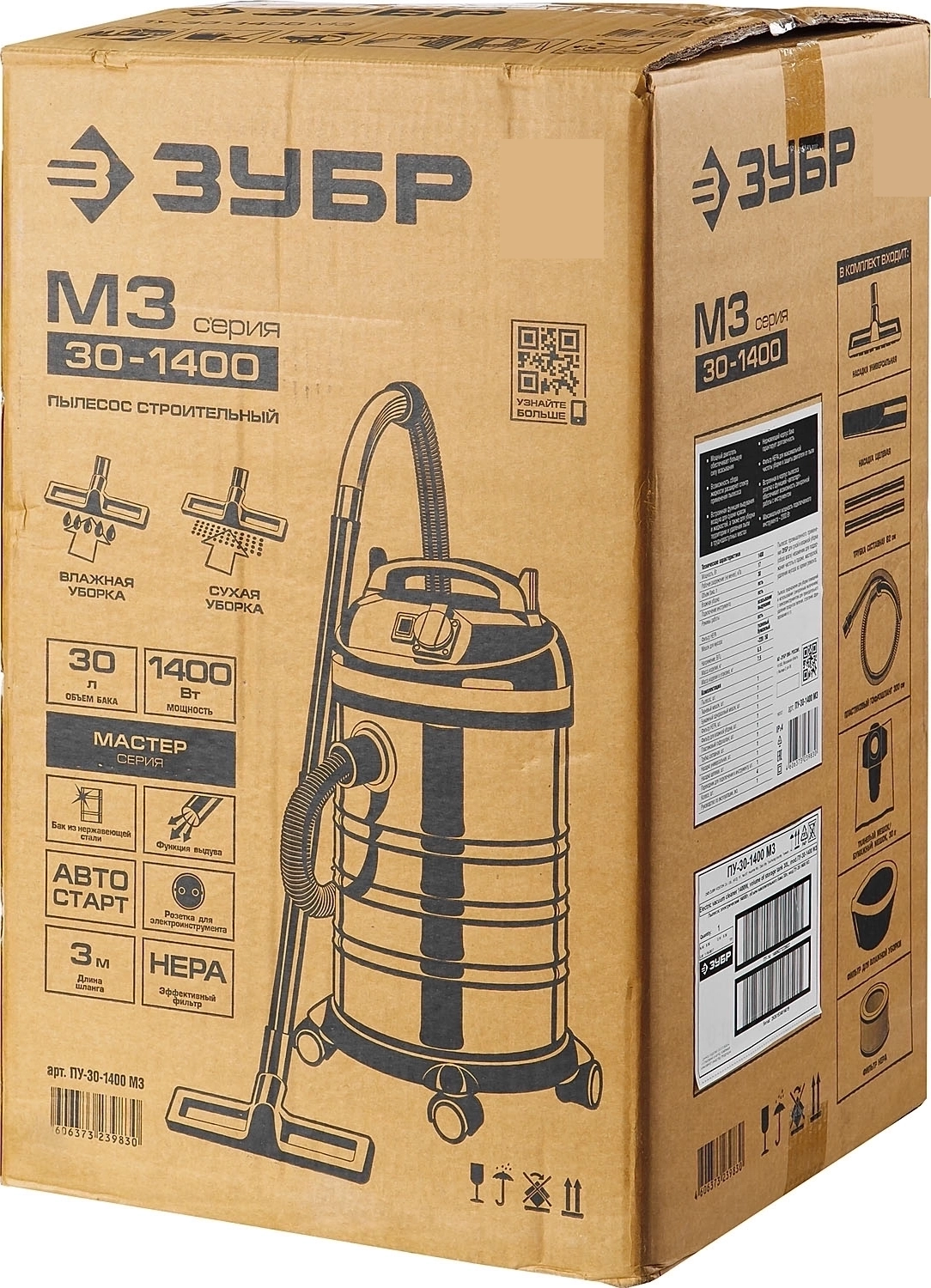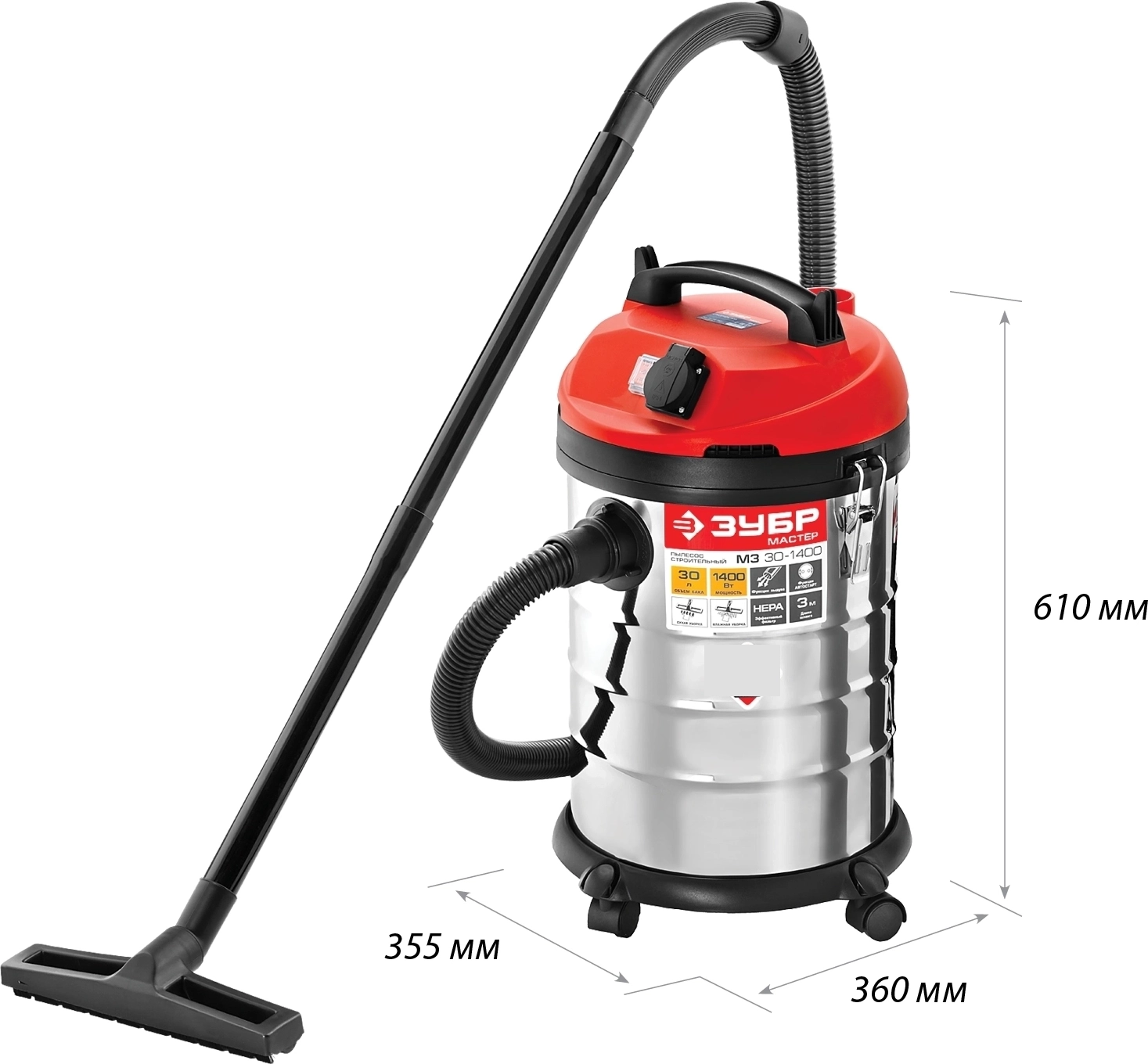 Строительный пылесос ЗУБР М3, 30 л, 1400 Вт
