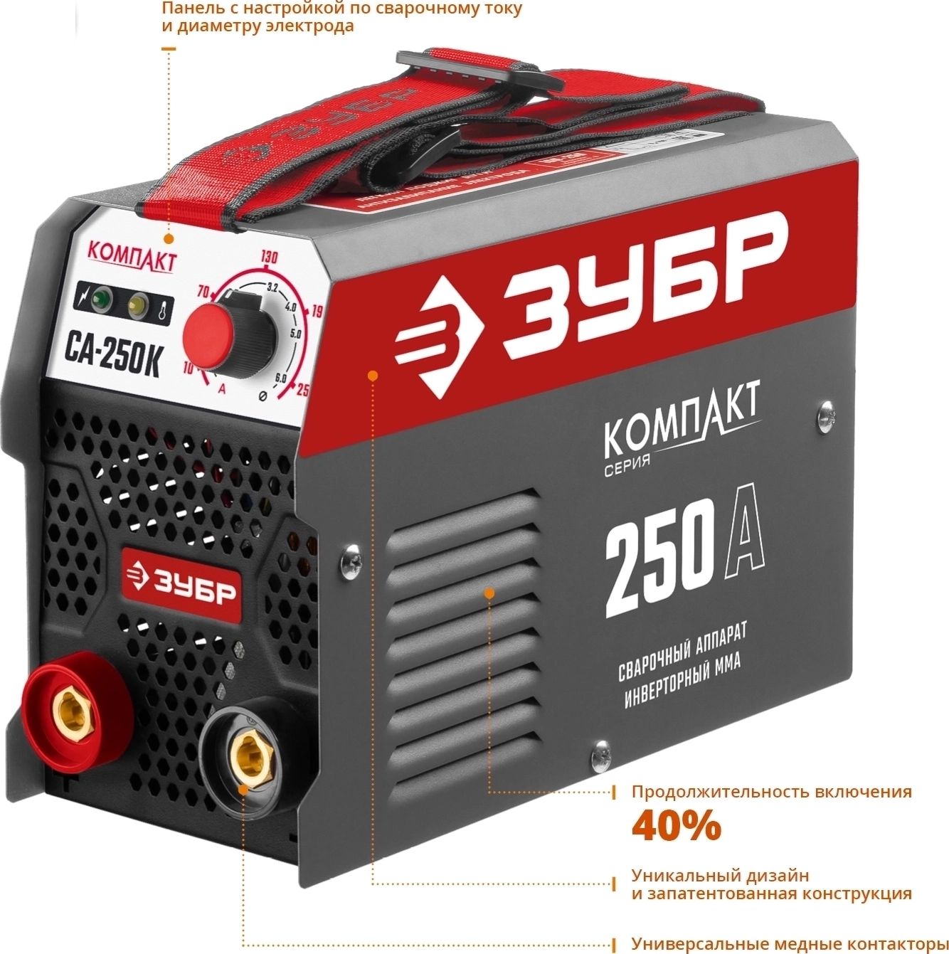 Сварочный аппарат инверторный ЗУБР ММА, 250 А, КОМПАКТ, макс. электрод d6.0 мм